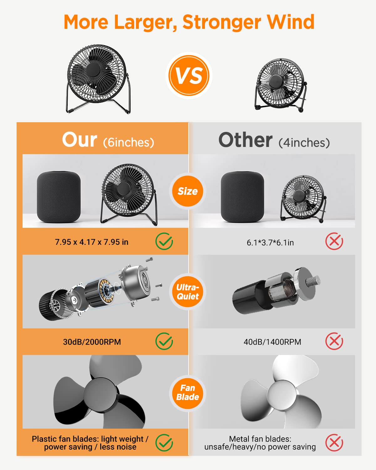 Easyacc 6 Inch Usb Desk Fan, Small Usb Desk Fan, [Small Quiet Strong Airflow And 360 Rotating Personal Table Cooling Fan] Usb Po