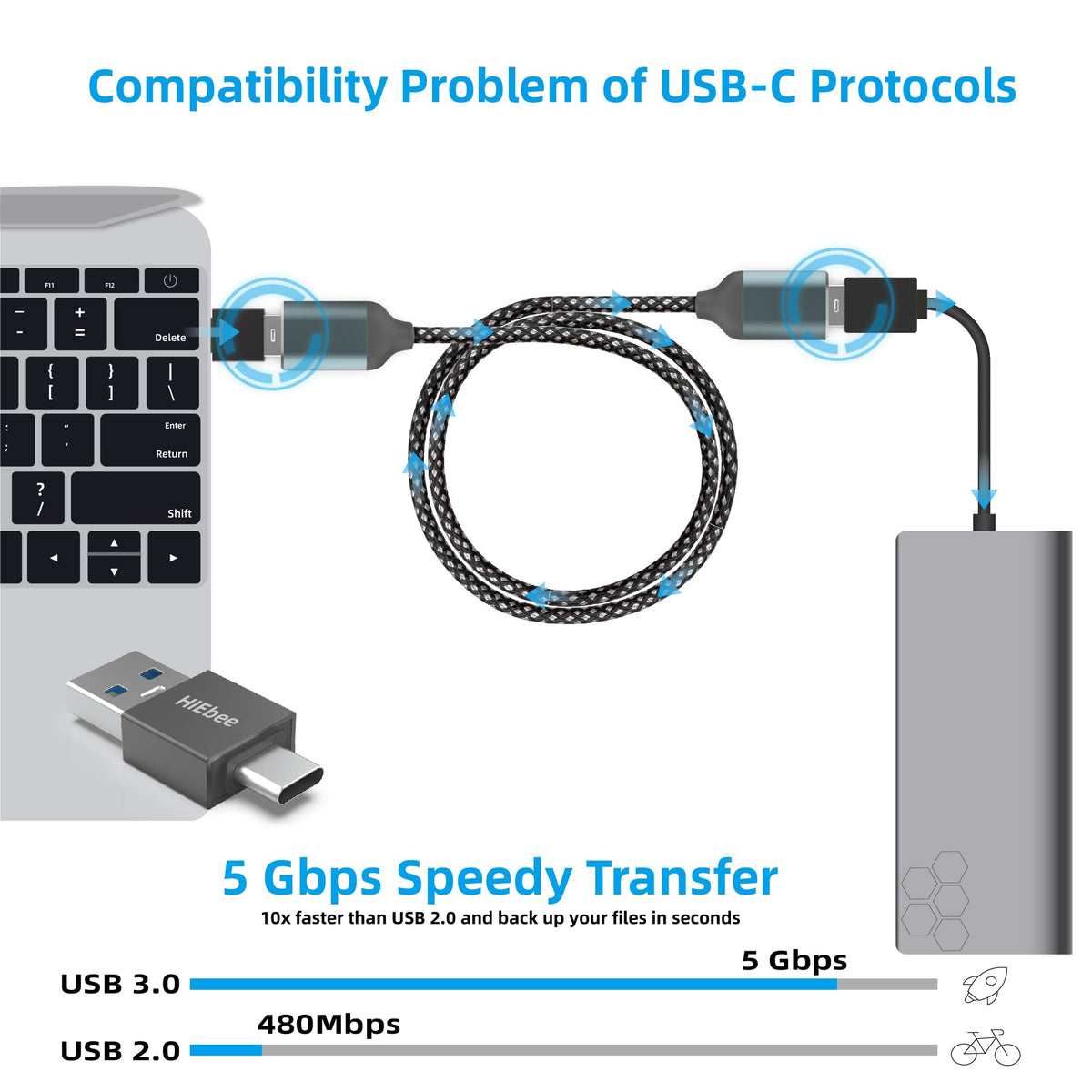Q: What types of devices are compatible with the EBEETECH USB 3.0 Extension Cable?A: The EBEETECH USB 3.0 Extension Cable is universally compatible with a variety of devices, including laptops, keyboards, mice, and other USB peripherals. It includes a Type A female to female extension cord, a USB 3.0 male to USB C male adapter, and a USB 3.0 male to USB 3.0 male adapter.