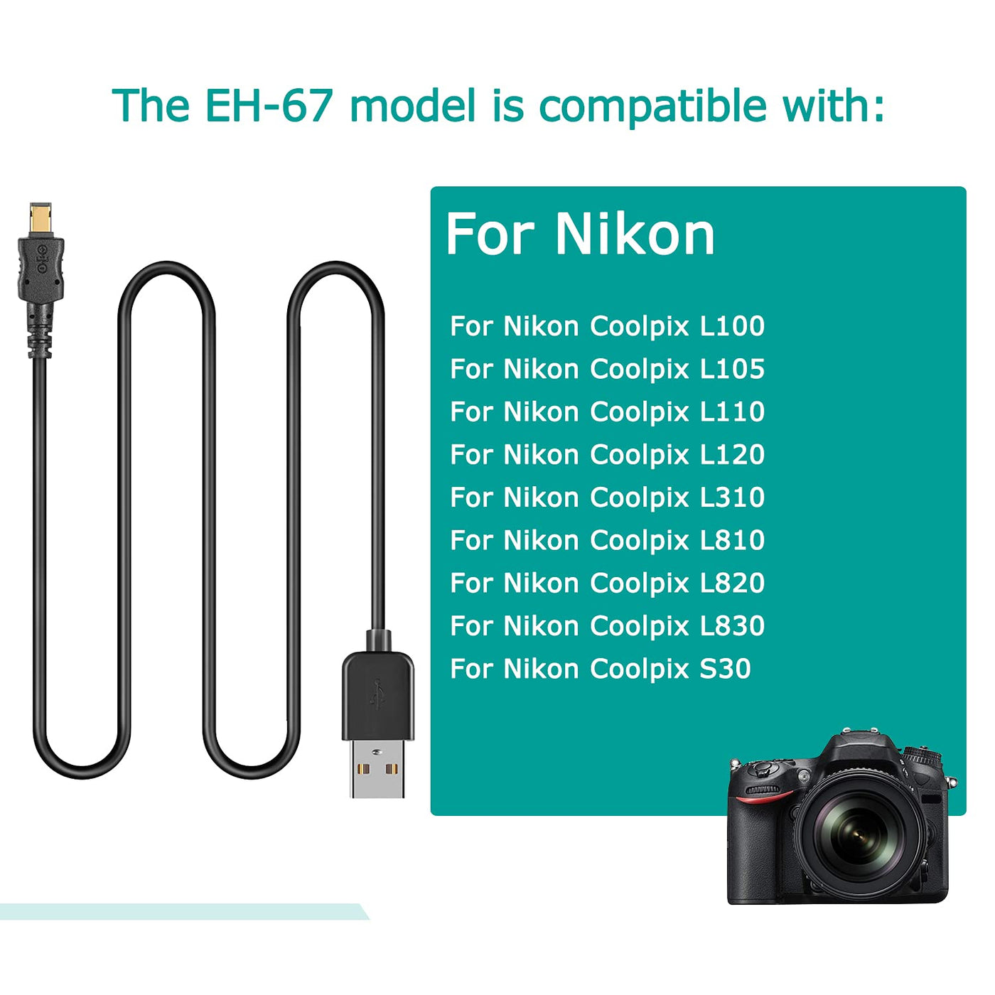 Eh 67 Eh67 Usb Cable 1.0M Digital Cameras Dc Cable For Nikon Coolpix L100 L105 L110 L120 L310 L320 L330 L340 L810 L820 L830 L840