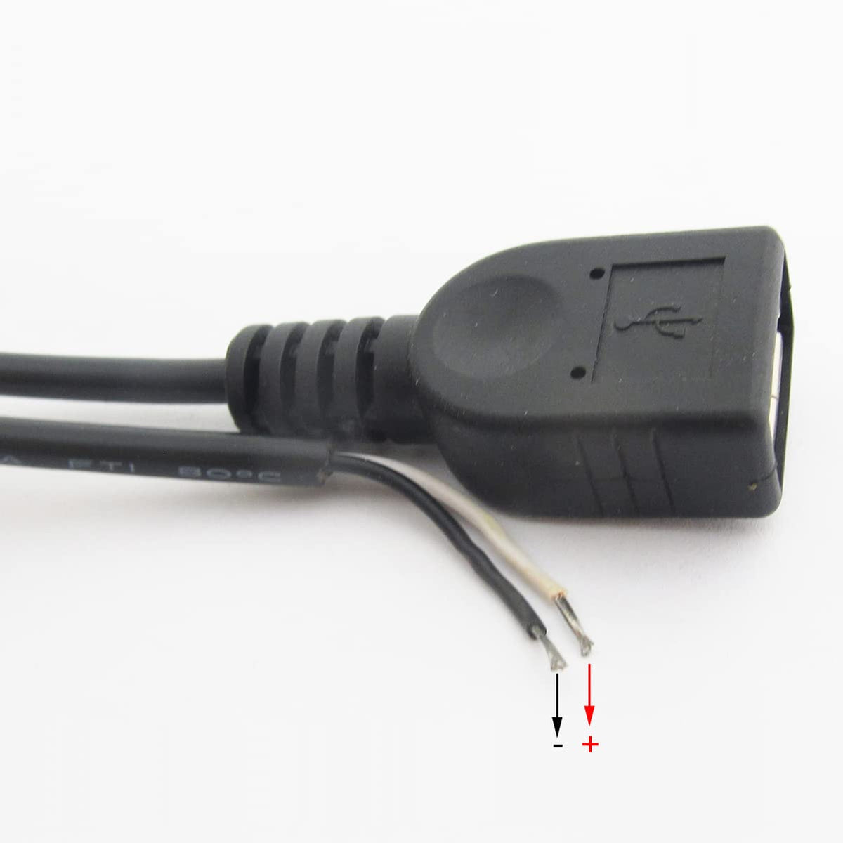 Elnone Short Charging Usb 2 Wire Pigtail Cable (4 Pack 12 Inch) 30Cm 22Awg 3A Black Usb Female 2 Wire Power Cable Pigtail Cord C