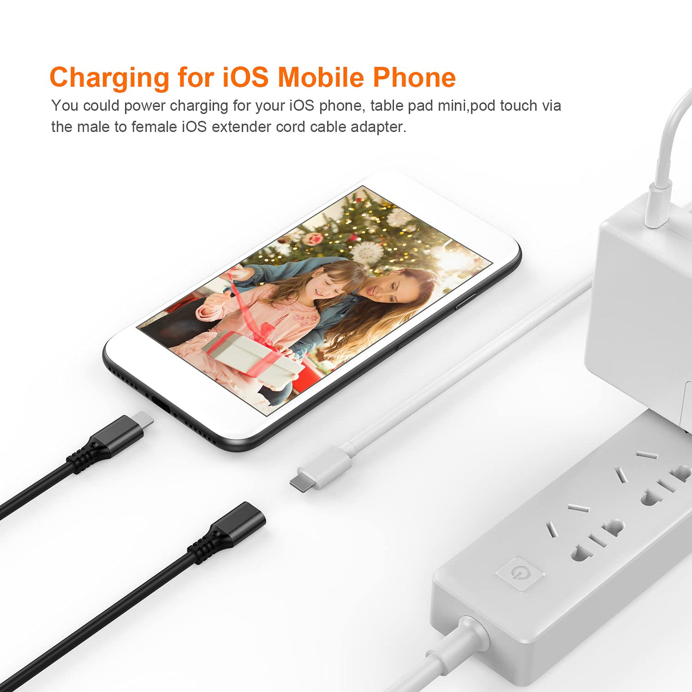 Ematetek I Phone Extension Connector Cable Adapter Transfer Video Audio Data And Charge. Male To Female 1Pcs I Phone Extender Co