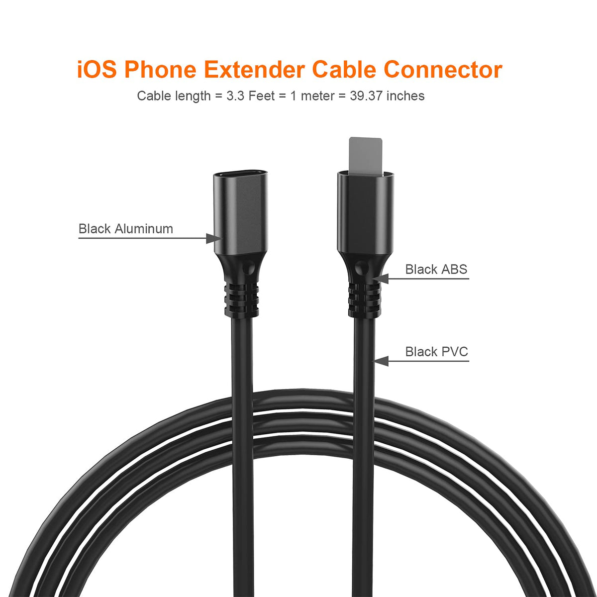 Q: How long is the EMATETEK i-Phone Extension Connector Cable?A: The cable measures 1 meter (3.3 feet) in length, offering extra reach for your i-OS devices, especially useful when using protective cases.