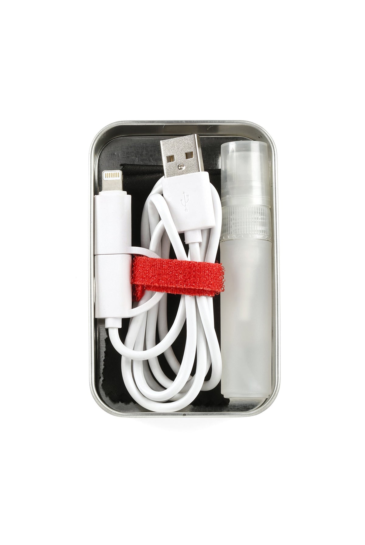 Clean And Organize Your Tech Supplies While On The Go! This Handy Kit Includes: 1 Microfiber Cloth, 1 2-In-1 Usb Cable (3 Ft), 1 Red Cable Tie, And 1 Bottle 5 Ml Bottle Of Spray Cleaner.