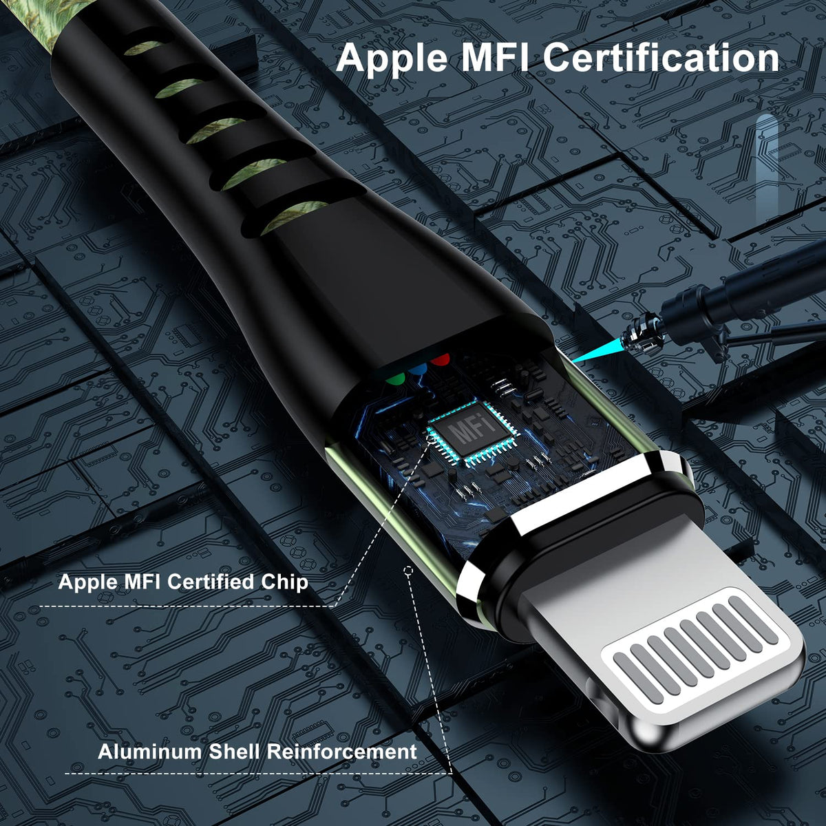 What You Get: Long Phone Charger Cord 3 Ft - 3Pack Light Green, Replace For Iphone Accessories Cables Or Add Another Phone Cord For Home,Work Or Travel. Quick Response To Any Questions Product Questions, We Will Reply Within 24 Hours.(Contact Method: ''Account Service'' ? ''Order History'' ? ''Contact Seller'') | Mfi Certified Cable: Each Cable Contains A Unique, Verified Serial Number And An Authorization Chip Issued Ensure Fully Compatibility With Any Lightning Device | Goodbye To Easy Broken Connector: Sr Lengthened Design + Aluminum Connector. Make The Service Life Of The Cable Longer. Nylon Braided Thread Is Tightly Woven. Phone Charger Is Easy To Sort Out,Not To Knot Or Tangle | Widely Compatibility: Essri Lightning Cable Compatible With Iphone 13/12/11/11 Pro/11 Pro Max/Xs/Xs Max/Xr/X/8 Plus/8/7 Plus/7/Sync 6S Plus/6S/6 Plus/6/5S/5C/5/Air 2/ Mini/Mini 2/Mini 4 Etc.(The Cable Could Be Used After Ios System Update) | Faster Charging & Sync: High-Quality Copper Wire And Nylon Braided Reduced Charging Cable Resistance Enable Cable To Provide The Fastest Possible Charge Via Any Usb Charger. Sync And Charge At The Same Time At The Fastest Speeds On Windows Pc Or Mac