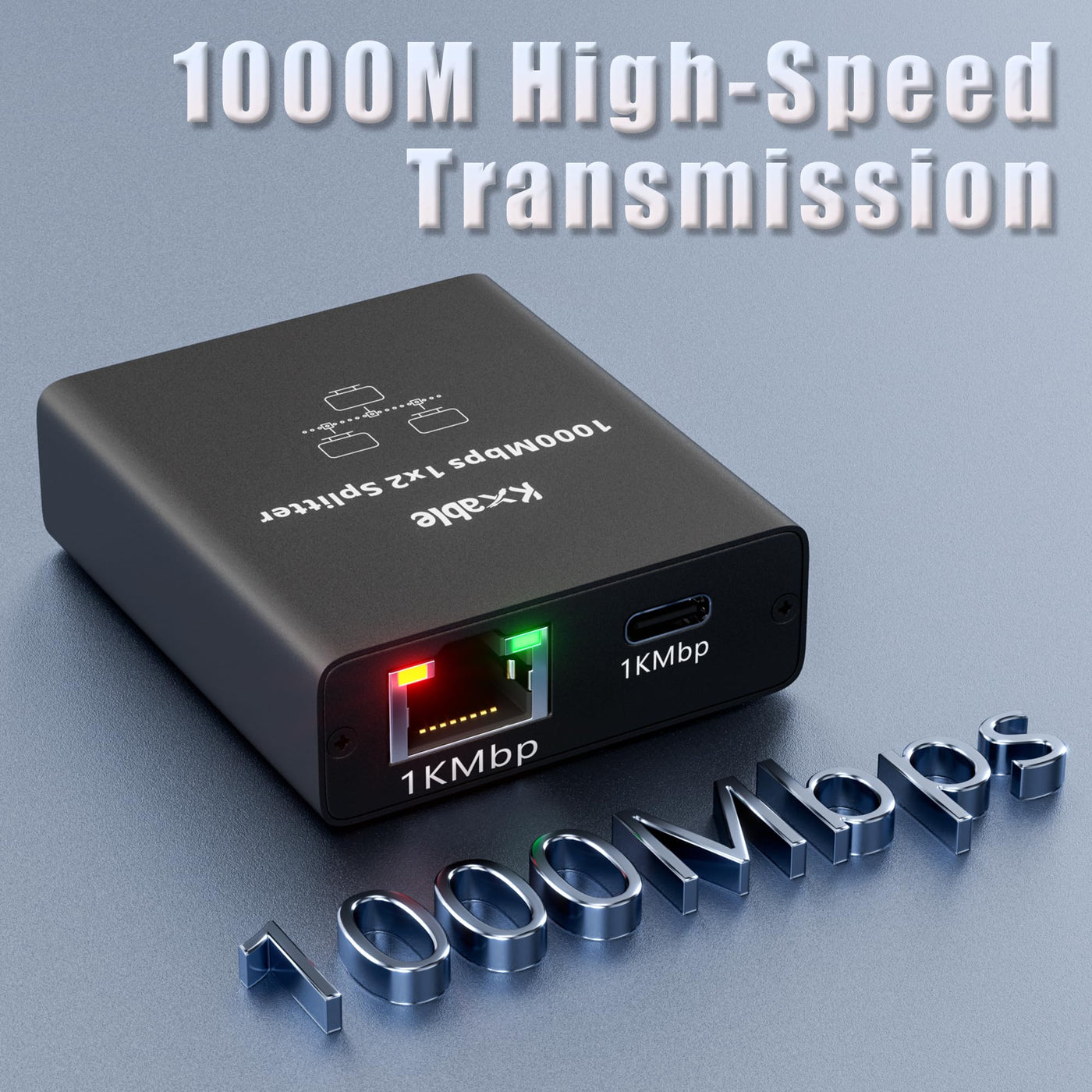 Ethernet Splitter 1 To 2 Out (Rj45 Port + Usb-C Port) This Gigabit Ethernet Splitter Allows You To Quickly Expand A Single Network Splitter Port To An Rj45 Port And A Type-C Port, Sharing A Single Ethernet Cable.Maximum Transmission Rate Of Up To 1000Mbps. Note : Must Be Powered By Inserting The Included Usb A To C Cable. Black Aluminum Alloy Shell. Gold-Plated Rj45 Needle Core. Wide Compatibilitycompatible With Cat 8, Cat 7, Cat 6, Cat 5E And Cat5. Compatible With Usb A To C And Usb C To C (4.0/3.2/3.1/2.0 Version) Please Note : The Version Of The Connected Network Cable And Data Cable Is A Key Factor Affecting Transmission Speed.