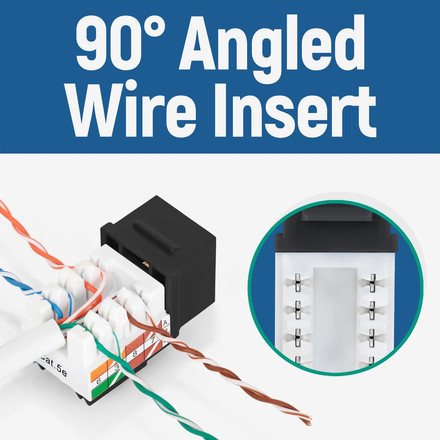 Everest Media Solutions 90 Angled Cat5E Keystone Jack In Black Slim Profile Rj45 Ethernet Connector Compatible With 90 Angle