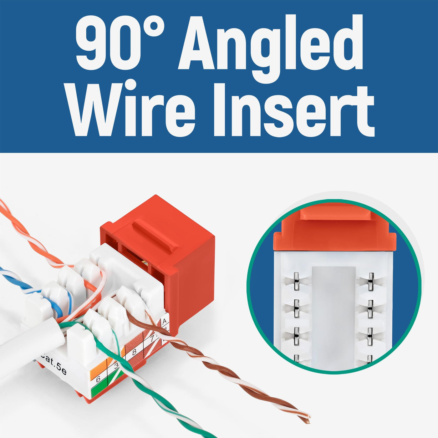 Everest Media Solutions 90 Angled Cat5E Keystone Jack In Orange Slim Profile Rj45 Ethernet Connector Compatible With 90 Angl