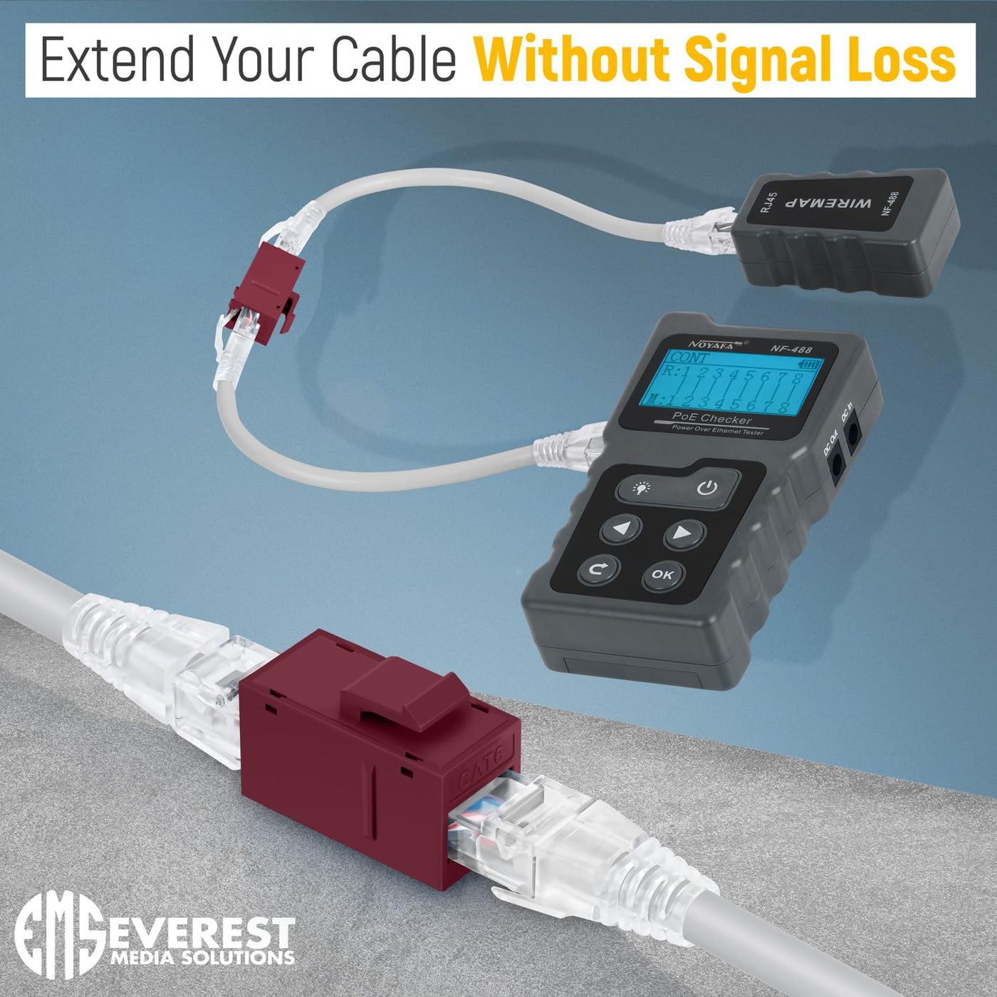 The Everest Media Solutions Rj45 Coupler Cat6 Connector For Ethernet Cable Is The Perfect Solution For Your Network Ethernet Cable Concerns. Superior Construction Combines A High-Impact, Fire-Retardant Plastic Housing With Gold-Plated Rj45 Contacts. Uses: - Fits Standard Keystone Cat6 Coupler For Wall Plates & Patch Panels - Extension Solution For Short Cat5E Cable Issues - Extends An Rj45 Cable Cat6 Ethernet Cable That You Cannot Move Or Relocate - Ethernet Female To Female Coupler For Cat6, Cat5 And Cat5E Superior Design: - No Need For Tools Required To Connect Cable Ends - Designed With Double Latches To Provide Secure Connection - Gold-Plated Contacts - High Impact Abs Plastic Material - Fire Retardant Plastic Housing Colors Available: - White, Gray, Red, Orange, Purple, Yellow, Pink, Green, Black, Blue Choose From: - 6-Pack - 12-Pack - 24-Pack - 48-Pack