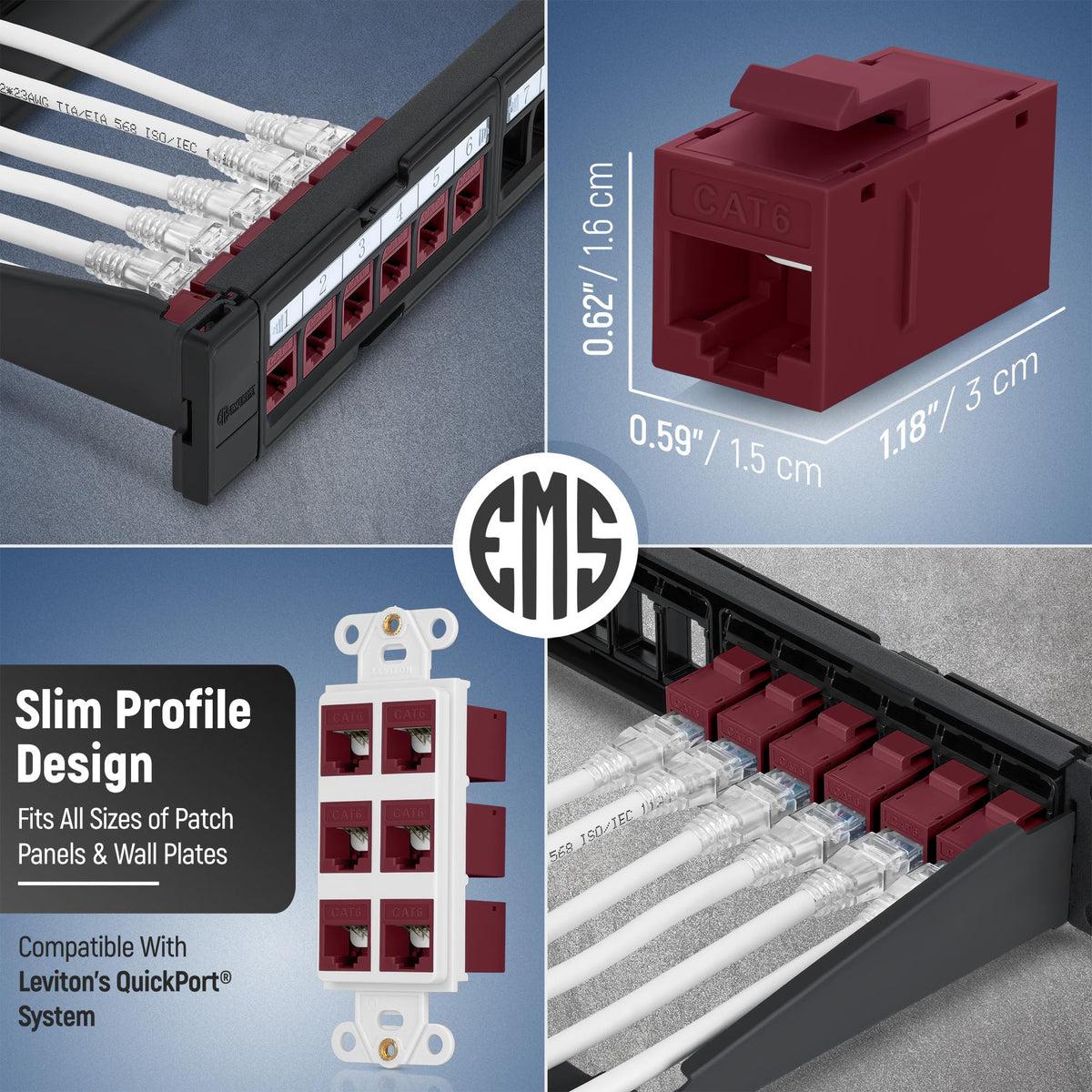 Everest Media Solutions Rj45 Cat6 Keystone Coupler In Red 6 Pack Female To Female Ethernet Keystone Jack For Standard Wall P