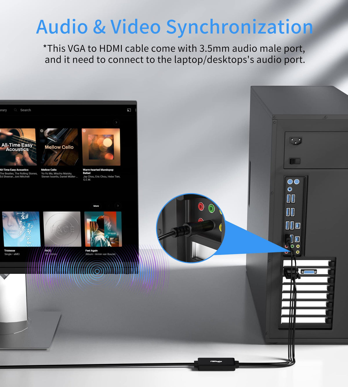 Fairikabe Vga To Hdmi Cable With Audio, 1080P Hd Vga To Hdmi Adapter Cable 6 Feet, Vga Male To Hdmi Male Cord For Vga Computer/L