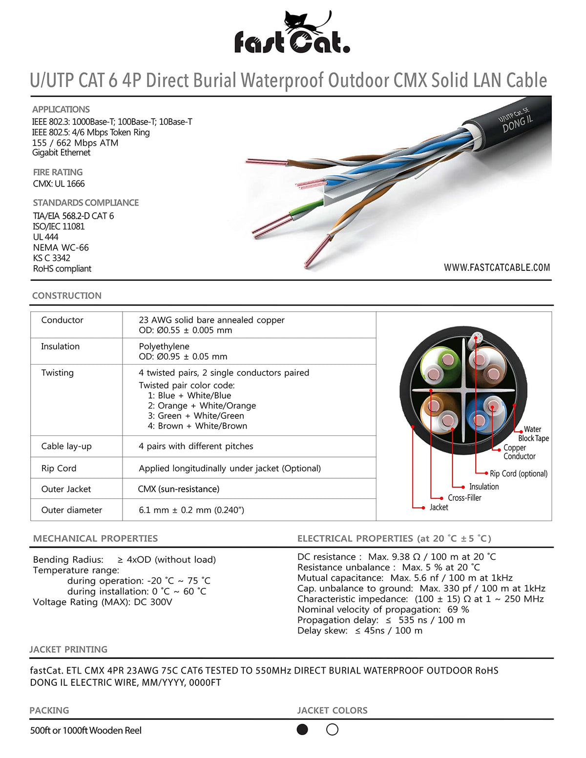 Fast Cat. Cat6 Direct Burial Outdoor Ethernet Cable 1000Ft Waterproof Cat6 Cable With 23Awg Solid Copper Conductors Cmx, Utp 550Mhz Heavy Network & Gaming Ethernet Cable � White