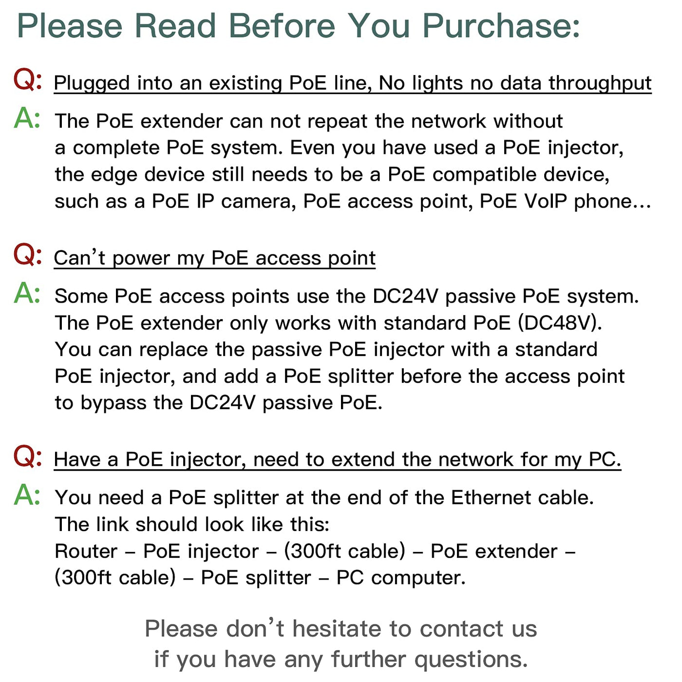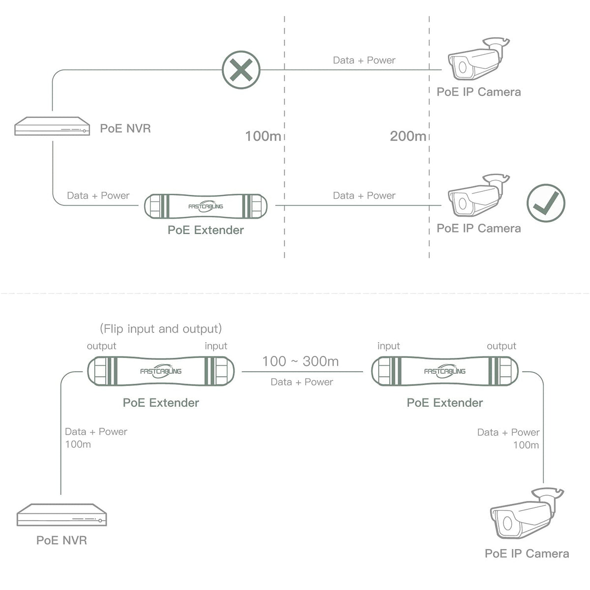 Waterproof Poe Extender Is An Economic And Convenient Solution For Ethernet Extension, It Can Help Ip Devices Get Fast Network And Reliable Power Supplying Beyond 100 Meters, Such As Poe Ip Cameras, Poe Access Points, Poe Voip Phones, Or Other Low Voltage Poe Devices Without Breaking Ieee 802.3 Standard And Affecting The Data Transmission Performance. (Important: This Poe Extender Doesn'T Work With Non-Poe Equipment Such As Network Switch Or Computer). This Poe Extender Offers You A Maximum Distance Of 300M Between Two Units, Coupled With The Pse And Pc, The Whole Distance Can Reach Up To 500 Meters. It Features Ip67 Waterproof Design And It Suits For Direct Burial Installation, Which Allows The Poe Extender To Work In An Outdoor Harsh Environment And Serve A Longer Life. The Extender Feature Plug And Play Installation, And You Just Need To Add It To Your Networking System Without Breaking The Ieee 802.3 Standard And Affecting The Data Transmission Performance. Complied With Ieee802.3Af/At, 30W Max, The Output Power Is Available, And It Provides A 100Mbps Data Rate. Besides, It Comes With An Easy Plug And Plays Design And No Requirement Of Extra Power Supply, Offering Flexible Installation.