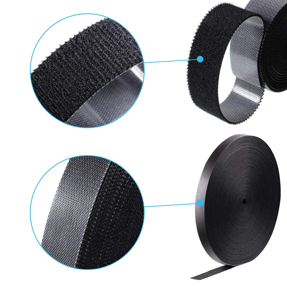 Features: The Reusable Fastening Tape Cable Ties Can Be Adjusted For Any Size. Hook Roll Fastening Tape Is Made Of Nylon Material, Hook Material On One Side And Roll Material On The Other. One Roll Is About 30 Yard In Length, Whatever The Length Bundle Of Cables You Are Working, Easy To Wrap And Hold Securely. Cuttable: This Double Side Hook Roll Is Cuttable To Meet Your Demands, Which Can Be Fixed And Applied Quickly, Simple And Convenient To Use. Wide Range Of Usages: Come With 1 Roll Of Cable Management, Which Is Suitable For Organizing Cable Harness, Wires, Wires Or Packaging, Under The Desk Or Around Commercial Closed-Loop Office Building Cable Finisher. Specifications: Color: Black Size: 3/4 Inches In Width, 30 Yard In Length Quantity: 1 Roll Package Includes: 1 Roll Of Fastening Tape Cable Ties