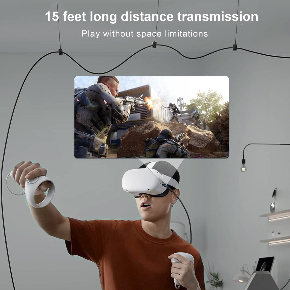 Q: What devices are compatible with the FIBBR Ultra Fiber Optic Cable?A: The FIBBR Ultra Fiber Optic Cable is compatible with a variety of devices including Oculus Quest Link, Pico, Vive VR glasses, and other PC VR devices, making it a versatile choice for users in the VR ecosystem.