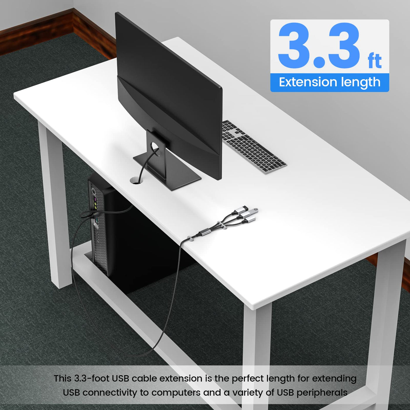 Q: How does the 4Ft length of the USB cable benefit me?A: The 4Ft length of the USB cable provides extra flexibility by allowing you to extend the connection between your computer/laptop and multiple USB devices, making it easier to organize your workspace.