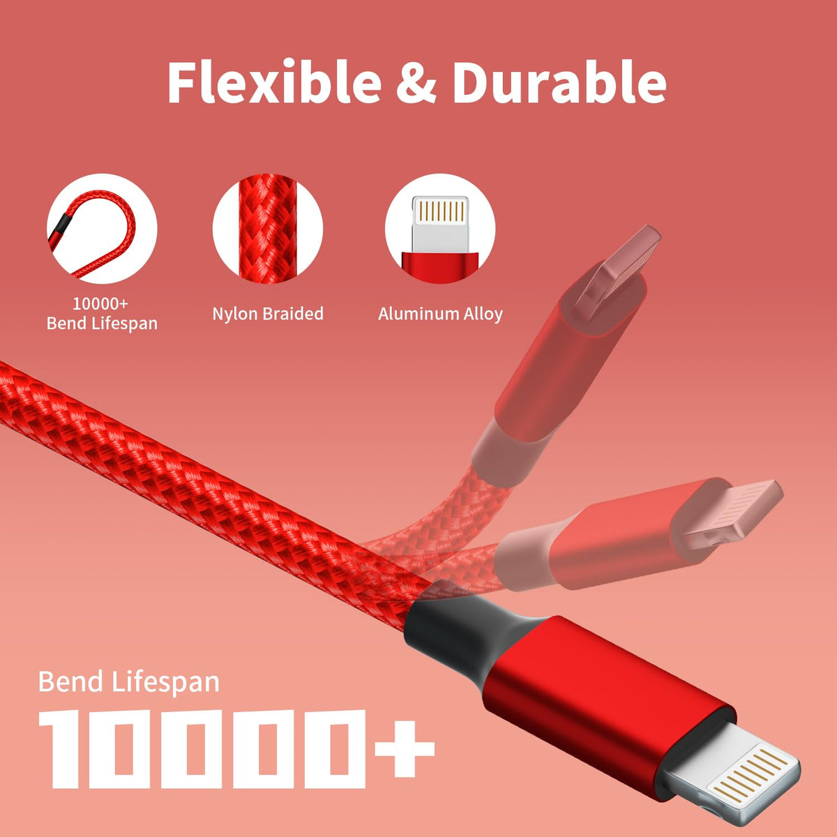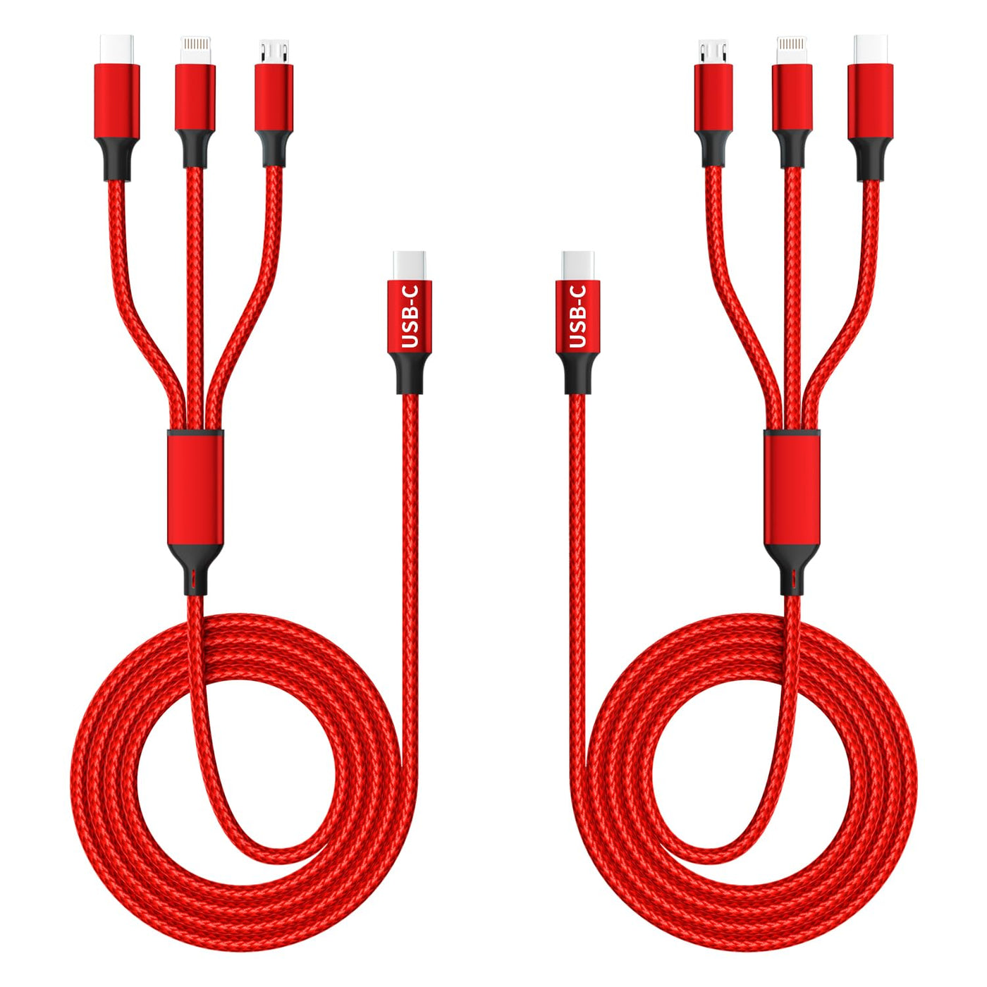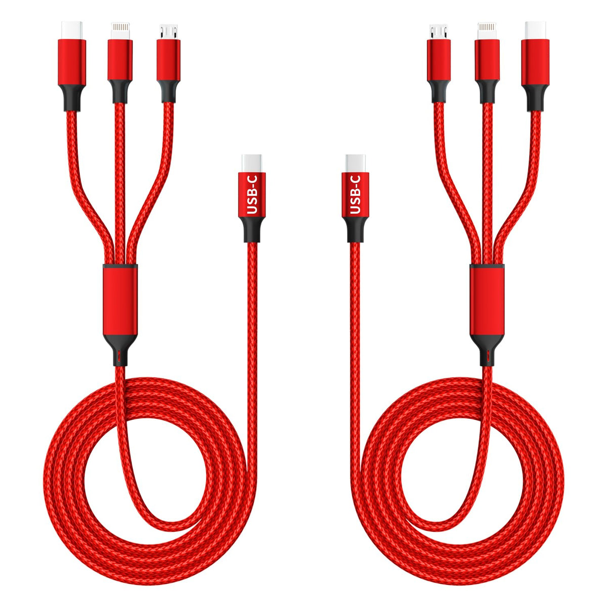 Multi Cable Charging Cord, 2Pack Multi Charging Cable Usb C Nylon Braided Multi Head Charging Cable With Type-C, Micro Usb And Ip Port Connectors For Cell Phones And Tablets. One Cable Three Charging Cables,The Design Is Very Compact, Small And Lightweight, Charging Your Device Anytime, Anywhere. Compatible With Most Of The Mobile Phones Available On Market.High-Quality Copper Core Ensures Your Devices Charging. Perfect Length 4Ft Is Perfect Length For A Charging Cable For Long Distance Use. Ideal For Charging Anywhere, Provides You A Moving Around The House While Charging On A Wall Adapter. Superior Durability A Tough Nylon Exterior Resists Damage From The Outside, While The Cable'S Interior Is Precision-Designed To Handle Thousands Upon Thousands Of Bends. Universal Compatibility:The Type C Port: Compatible With Type C Supported Devices.The Micro Usb Port: Most Android And Windows Phones, Tablets And Many Other Devices.The Connector Can Be Use For Ios Phone.Warm Tips:1.These Type-C, Micro Usb Connectors Only For Charging, Not Support Data Transmission. The Ip Connector Not Only Can Charging, But Also Data Transmiss.2. Please Use At Least 2A Usb Power Adapter When Charging Pad Or Multiple Devices.Package: 2Pcs On One Bag
