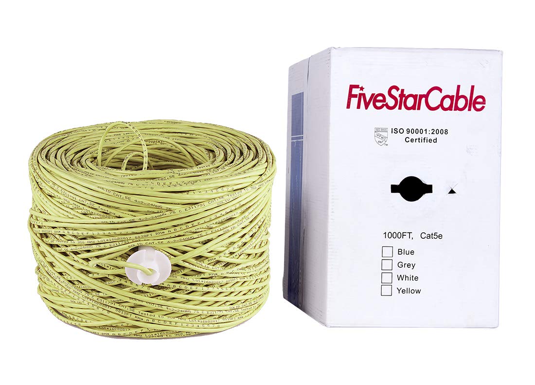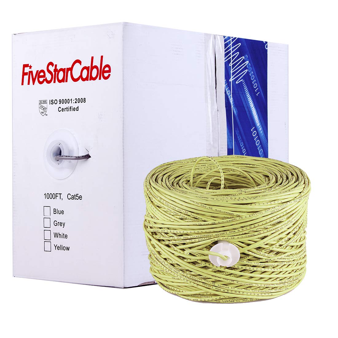 Fivestarcable Cat5E 1000 Ft. Utp 24Awg Cca Twisted Pair Networking Ip Ethernet Security Camera Bulk Cable Wire Pull Box Yellow Color