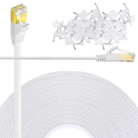 Flat Cat6 Ethernet Cable 200 Ft With Cable Clips, Comtelek Cat 6 Ethernet Rj45 Patch Cable, Slim Network Cable, Thin Internet Computer Cable 200 Feet White(60 Meters)�