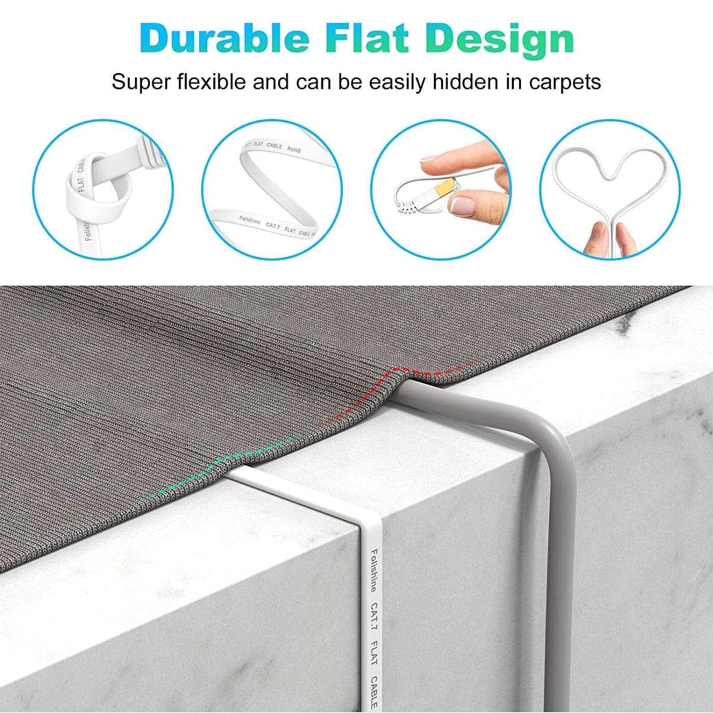 Folishine Cat 6 Ethernet Cable High Speed With Network Patch Cords, Lan Cable Clips&Rj45 Connector For Router Modem Faster Than