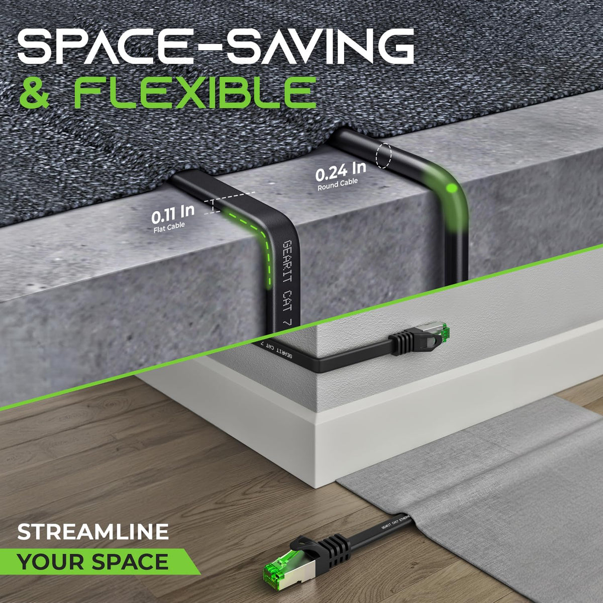 Experience Gaming Like Never Before - Gearit'S Category Cat 7 Ethernet Cable. Boasting Bandwidths Of Up To 600Mhz And Lightning-Fast Data Speeds Of 10Gbps, It Ensures Uninterrupted Online Gaming, Hd Streaming, And Rapid Uploading/Downloading. Say Goodbye To Lag And Hello To Seamless Connectivity. | Uv, Weatherproof & Direct Burial - Introducing Our Cat6 Outdoor/Interior Cable, Engineered To Brave The Elements With Uv And Weather Resistance, Ensuring Durability In Any Environment. This Flat Cable Sets A New Standard In The Market, Featuring An Lldpe Rated Jacket Specifically Designed For Outdoor And Direct Burial Installations. Its Flat Design Offers A Notable Advantage Over Traditional Round Cables, Being Lighter And Thinner For Effortless Threading Through Conduits And Underground. | Space-Saving & Flexible - Our Flat Rj45 Cable Is Tailored For High-Density Environments, Offering The Flexibility And Space-Saving Benefits Of A Flat Cord Design. Perfect For Discreet Installations, It Effortlessly Runs Along Walls, Edges, Corners, And Underneath Rugs Or Carpets For Seamless Concealment. Say Goodbye To Kinks And Tangled Cords With This Versatile Solution. | Heavy Duty & Superior Performance - Our Foiled Twisted Pair (Ftp) Cable, Featuring Oxygen-Free Copper (Ofc) For Maximum Conductivity, Supports Bandwidth And Boosts Transmission Speeds, Ensuring Seamless Streaming Of Hd Videos, Music, Surfing The Net, And Hyper-Speed Gaming. The Shielded Cable And Metal Connectors Significantly Reduce Signal Interference, Enhancing The Quality Of Your Internet Connection. | Choose Your Length For Any Application - Whether You'Re A Contractor Who Needs To Network A New Build, Homeowner Wiring Up Your Home Office Or An It Pro Connecting To An Outdoor Router, This Cat6 Cable Lets You Choose From Multiple Lengths Without Needing To Cut Your Own Wire. Get Connected And Trust Gearit'S Quality Construction To Stand Up In The Long Term.