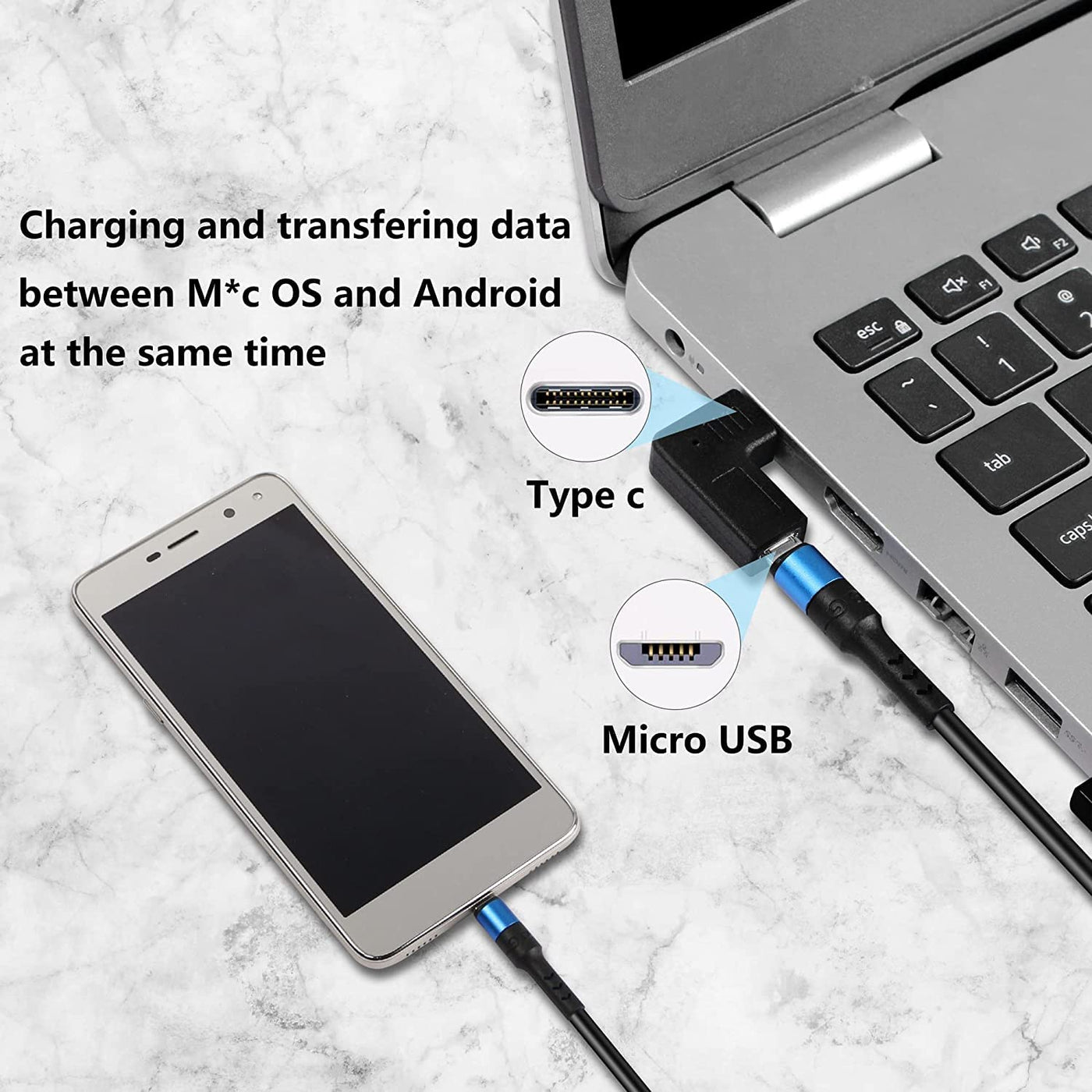Q: How portable is the GELRHONR Right Angle USB C to Micro USB Adapter?A: The adapter is compact and lightweight, making it easy to carry with you wherever you go. It's convenient to store at home, in your car, or even in your wallet, ensuring you're always prepared to charge or transfer data.