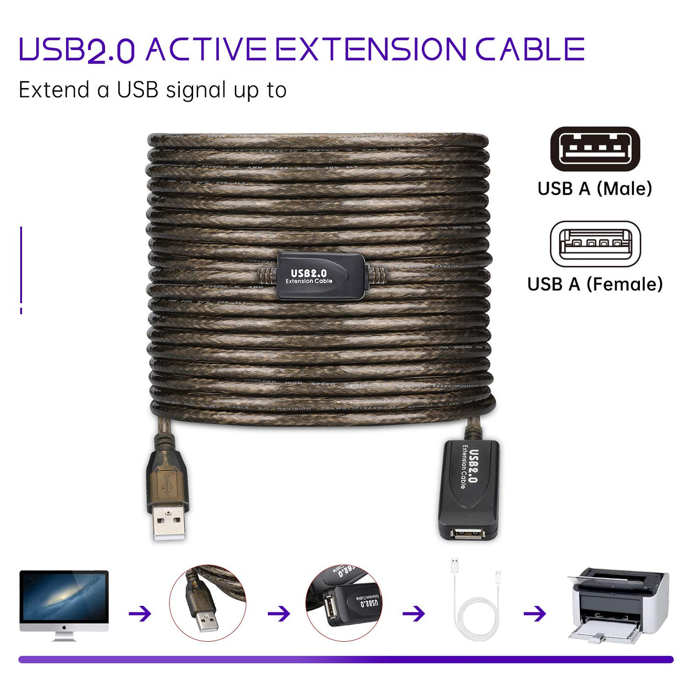 Ggmty 65 Ft Usb Extension Cable, Usb 2.0 Type A Male To A Female Active Repeater Extension Cable 65 Ft, High Speed 480 Mbps