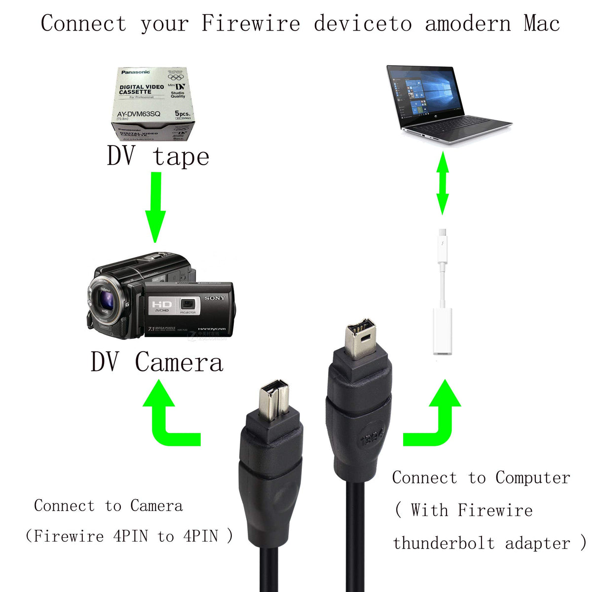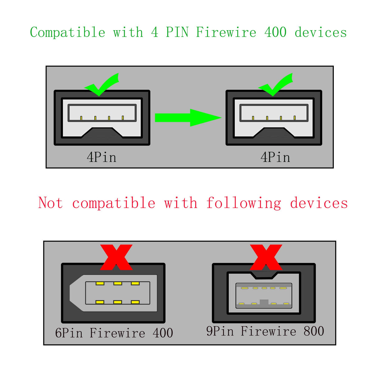 Gintooyun Firewire 400 Cable Cord 4 Pin To 4 Pin Male To Male Ilink Dv Cable Firewire 400 Ieee 1394 Cord For Computer Laptop Pc To Camcorder 6 Feet Black