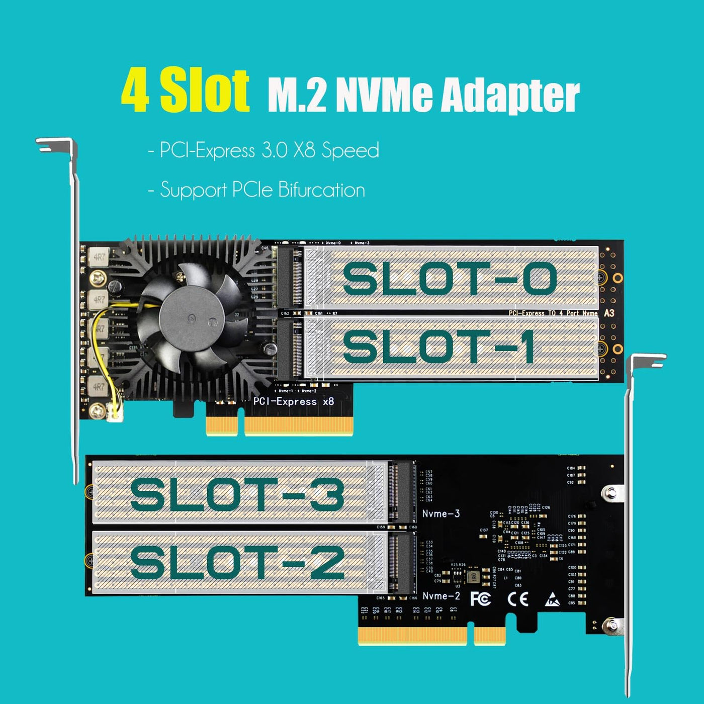 Quad M.2 Nvme To Pcie 3.0 X8 Adapter: By Installing 4 M.2 Nvme Ssds (Support 22110/2280/2260/2242/2230 M.2 Nvme Ssd) On This Pcie 3.0 X8 Adapter, Your Computer Will Be Able To Access 4 X M.2 Nvme Ssds At The Same Time (Note: Not Support M.2 Sata Ssd)