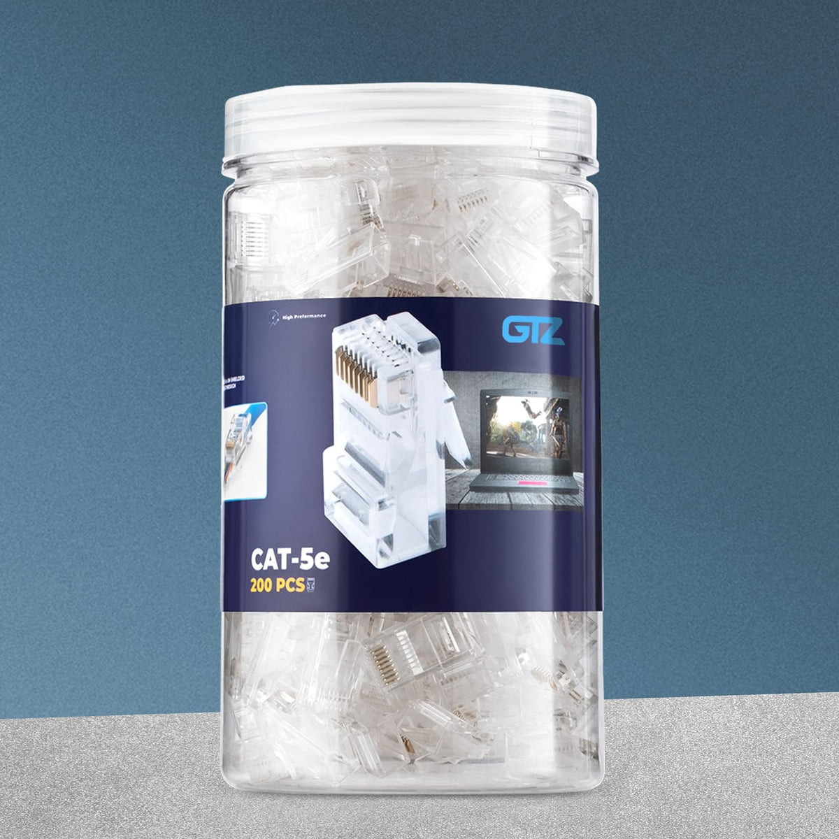 Gtz Rj45 Cat5E Pass Through Connectors Pack Of 200 Ez To Crimp Modular Plug For Solid Or Stranded Utp Network Cable Male E