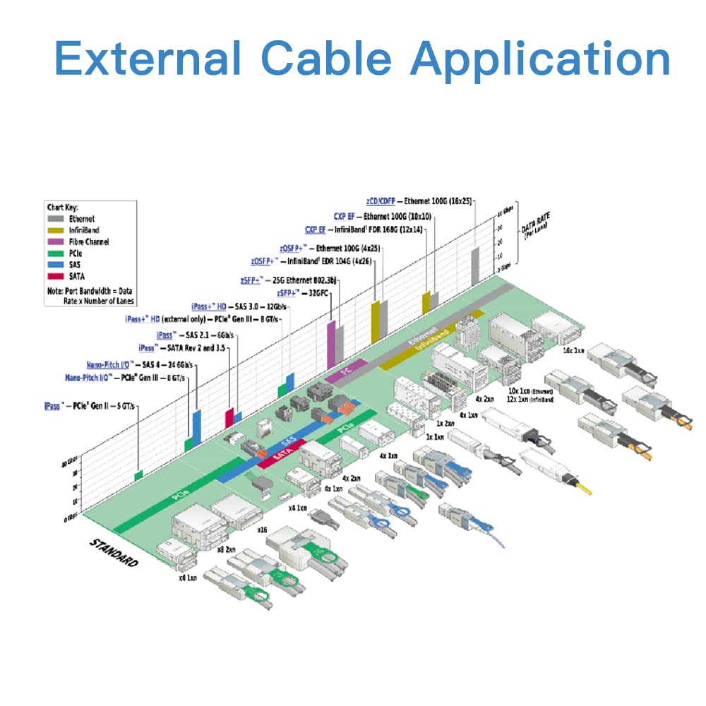 Q: What applications are suitable for this Mini SAS HD Cable?A: This cable is ideal for a wide range of applications including connecting Mini-SAS to HD Mini-SAS devices in data centers, servers, storage racks, RAID systems, and external storage systems.