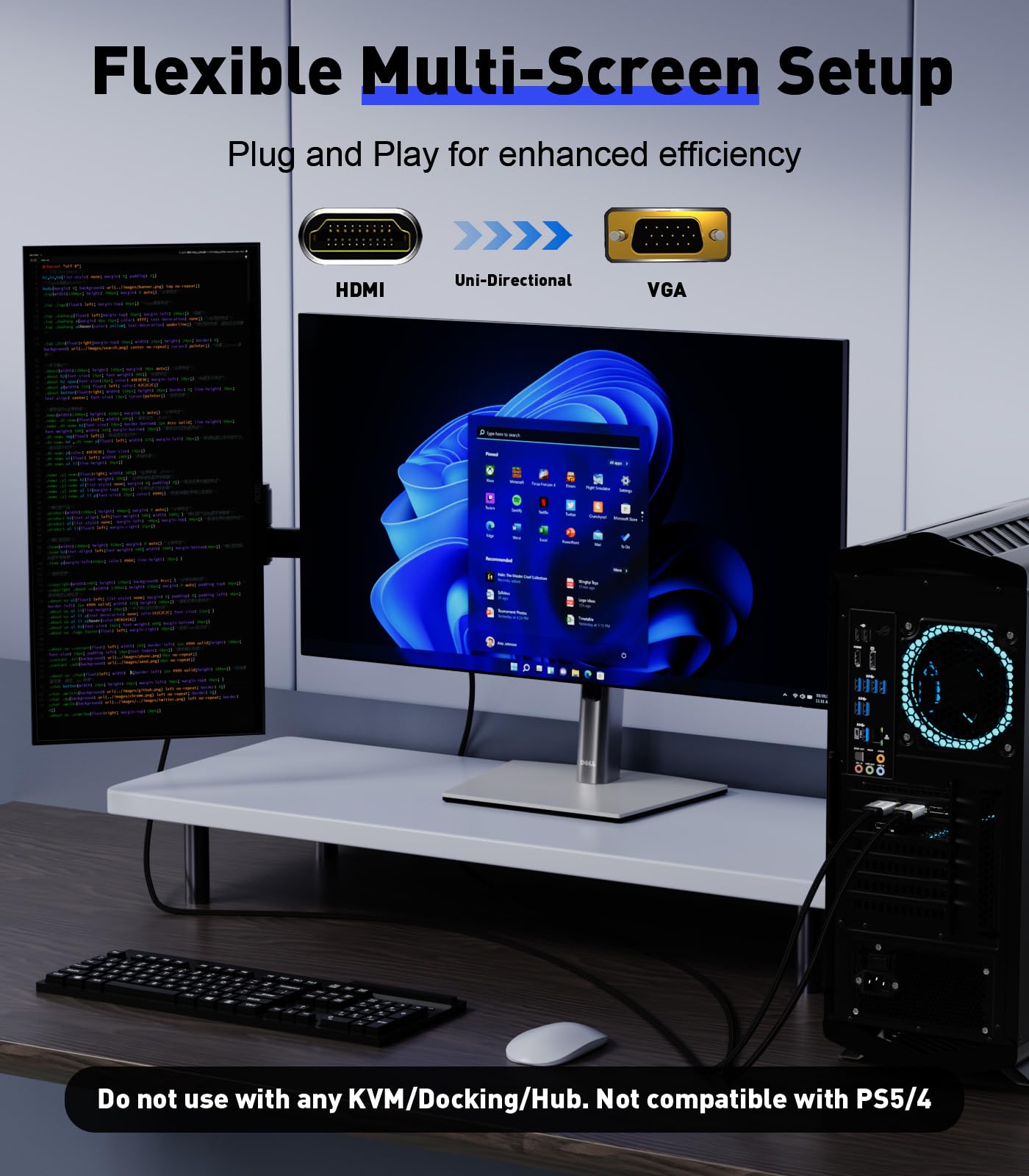Hdmi To Vga Cable: Switchflux Hdmi To Vga Adapter Hdmi Male To Vga Male Converter Supports Up To 1920X1080@60Hz Resolution (1080P Full Hd) Plug And Play, Built-In Advanced Ic Chip, Suitable For Expanding Desktop Or Mirroring Displays, No Need To Install Drivers, Suitable For High-Definition Monitors Or Projectors Connectors: Hdmi Glod-Plated Male(Input) Vga Gold-Plated Male(Output) Specification: Installation: Plug And Play, No Drivers Or Software To Install Gold-Plated Connectors: Optimised Performance And Corrosion Resistance High-Quality Aluminium Alloy: Excellent Heat Dissipation Nylon Braided Cable: Durable To Ensure Long-Term Use Ultra Hd : Supports Resolutions Up To 1920*1080P@60Hz Package Contents: 1 Hdmi To Vga Cable Grey Product Manual Note: Supports Signal Transmission From Hdmi To Vga Only Not Compatible With Blu-Ray Players And Devices With Low-Power Hdmi Ports