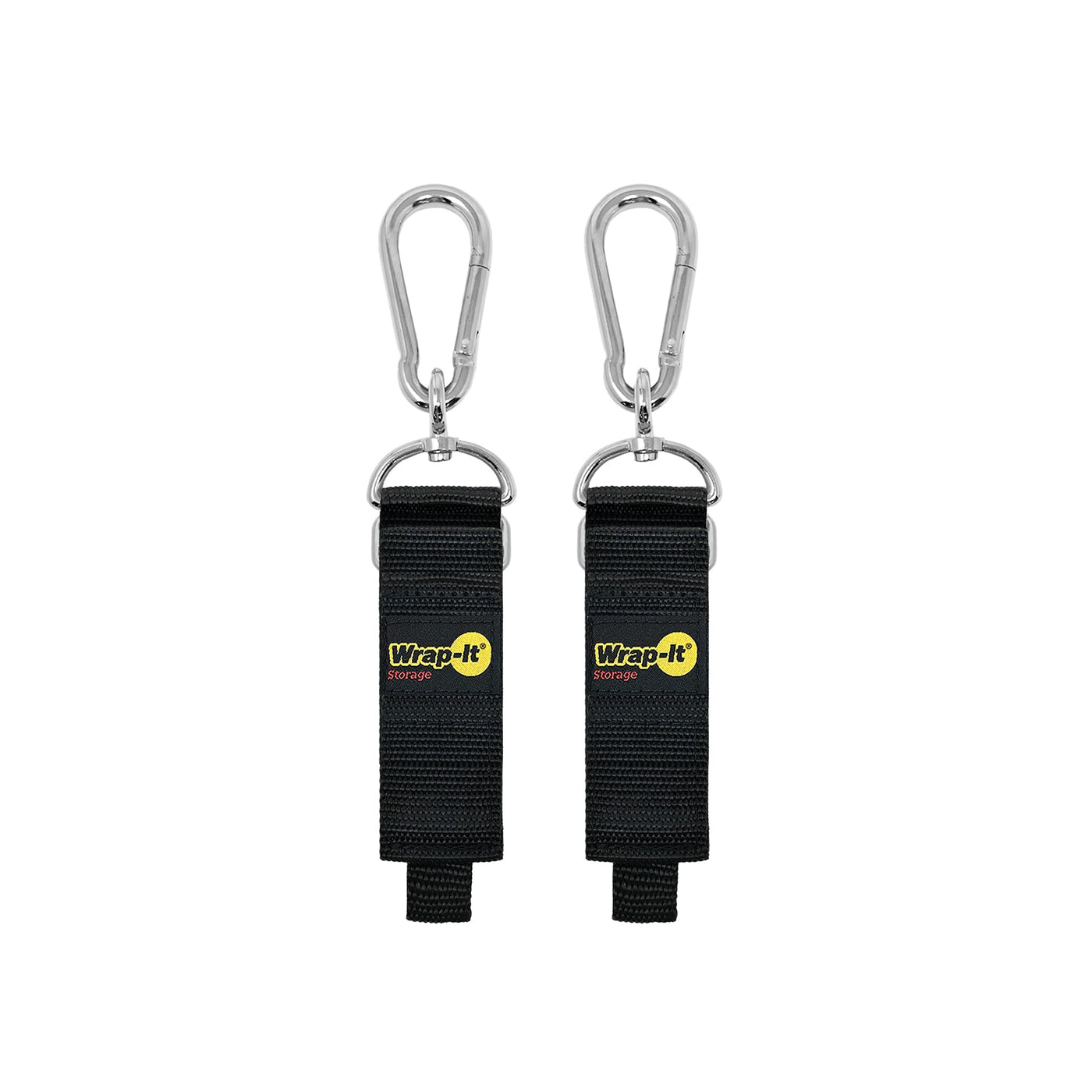 Hook 'N Hang Wrap It Storage Straps 12'' (2 Pack) Black Carabiner Straps To Use As Extension Cord Holder Heavy Duty Straps W