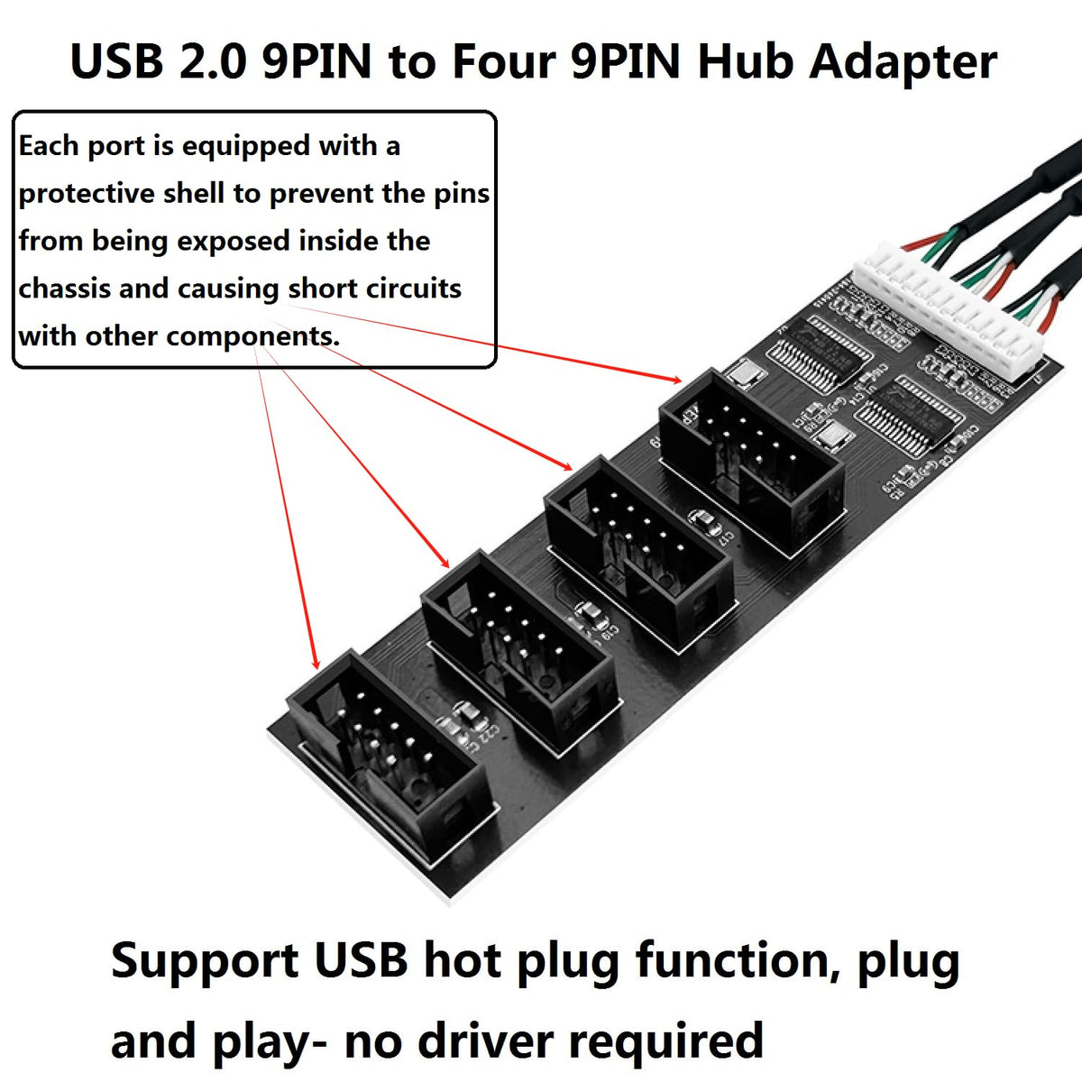 This Is A Motherboard Usb2.0 9Pin Expansion Card, Because Ordinary Motherboards Only Have 1 Or 2 Front Usb Connections, This Usb 2.0 Splitter Motherboard Includes 4 Usb 9-Pin Connector Interfaces, This Adapter Allows These Additional Pc The Component Is Added To And Fully Integrated With The Motherboard, Solving The Problem Of The Limited Number Of Built-In Usb Connectors. The Usb Splitter Is Plugged Into The Rgb Hub And Can Be Independently Controlled For The Rgb Fan And Water Cooling System. It Can Also Be Used As A Connection For The Motherboard'S External Bluetooth And Wireless Devices. The Whole Process Is Simple Plug-And-Play, No Driver Required. Instruction For Installation Usb Header Extension Splitter: Note: Please Turn Off The Power Of The Host Before Operation!! Step 1: Plug Into The Front Usb Connection And Sata Power Port. Step 2: Glue The Adapter To Any Convenient Location Inside. Step 3: Connect Diy Control Light Strips, Cooling Fans, Wireless Devices, Bluetooth Devices And Other External Devices. Step 4:After Confirming That The Connection Is Correct, You Can Turn It On And Let It Provide The Perfect Solution For Your Work. Package Included: 1X Motherboard Usb 9-Pin Connector Male 1 To 4 Female Extender