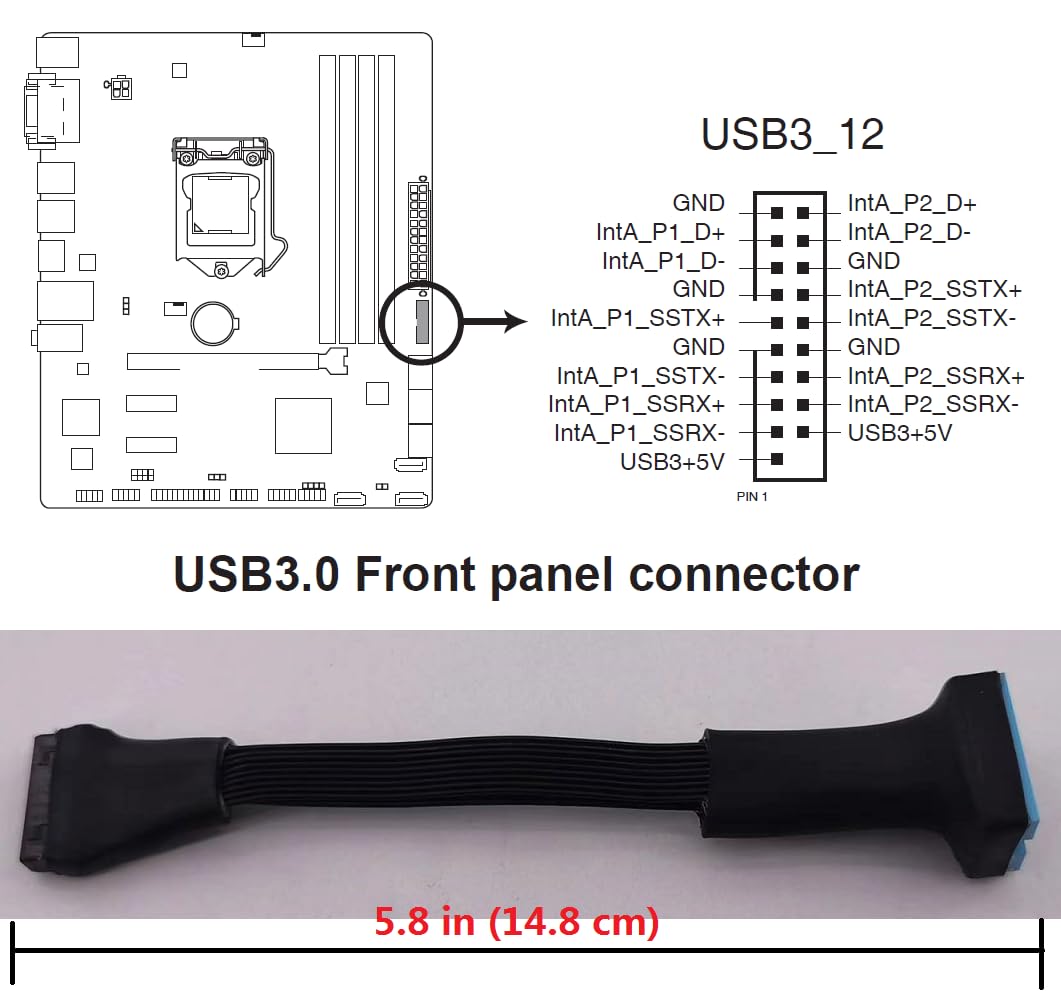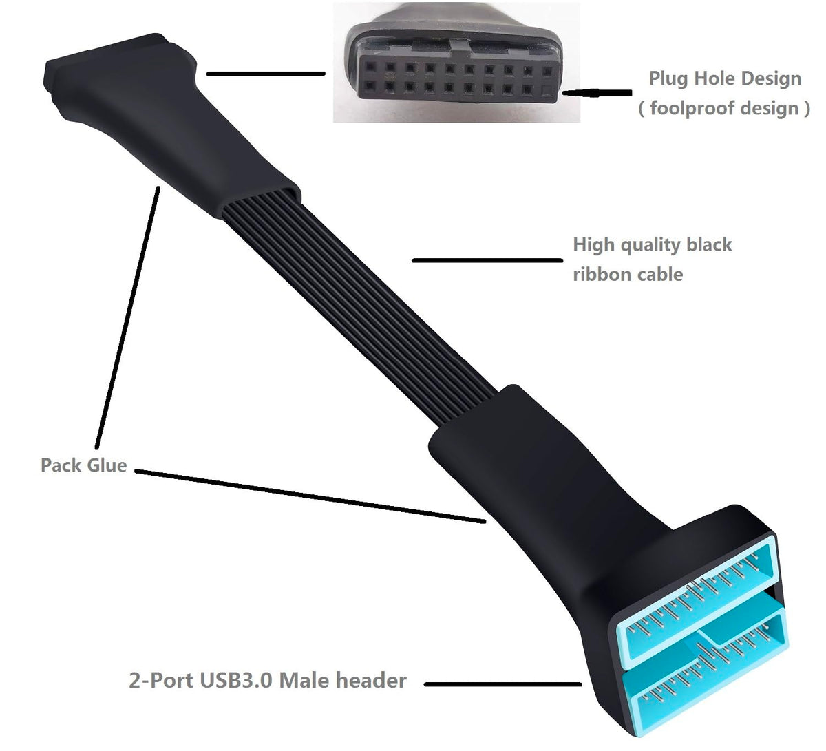 Usb 3.0 Connector Extension Cable: Usb 3.0 Connector Extension Cable For Motherboard, Can Expanded And Extend The Usb3.0 Connector On The Motherboard , Using An Excellent Design To Prevent Signal Loss, The 1/2 Y-Shaped Design Allows Additional Devices To Be Added To The Motherboard And Fully Integrated With The Motherboard, Supporting Transmission Rates Up To 5Gbps. Made From High Quality Black Flat Ribbon Cable, More Durable Than Individual Crimp Cables. Connector A:Usb 3.0 19/20 Pin Female Connector B/C: Usb 3.0 19/20 Pin Male Length: 14.8Cm/5.8Inch Package Included: 1 X Usb 3.0 Connector Extension Splitter Cable