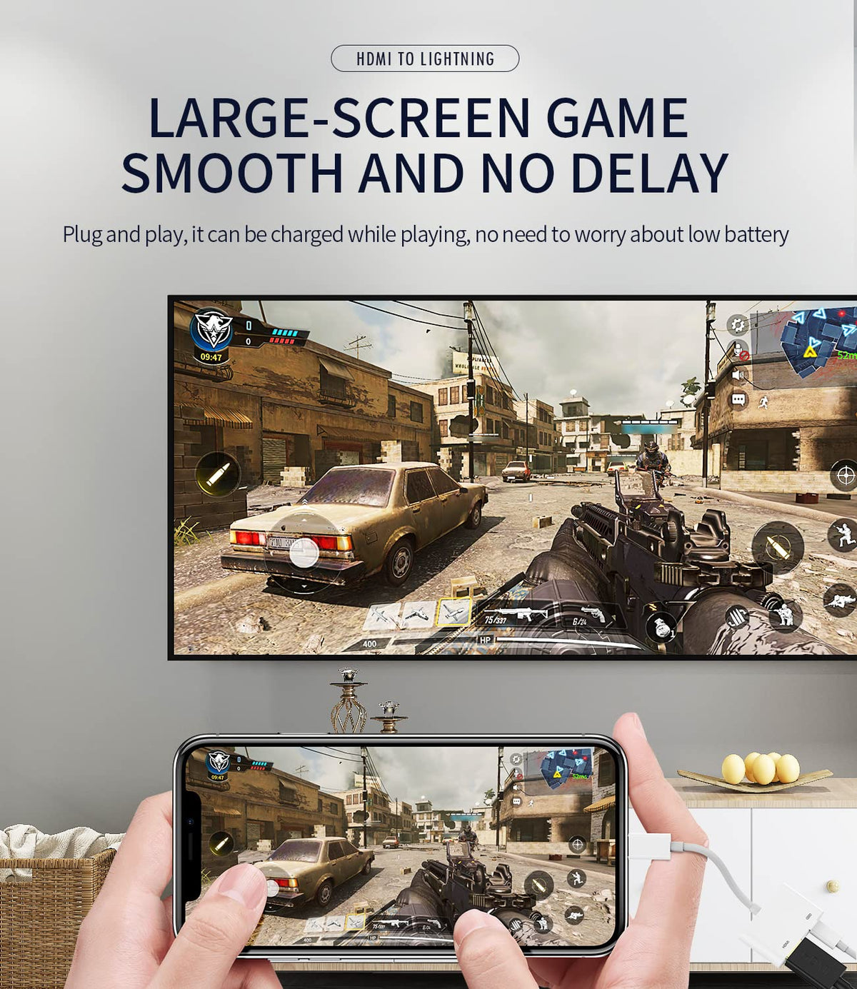 Hoyulli Lightning To Hdmi Adapter For Tv, Iphone 12, 13, Pro Compatible, 1080P Resolution, Easy To Use, Wide Compatibility