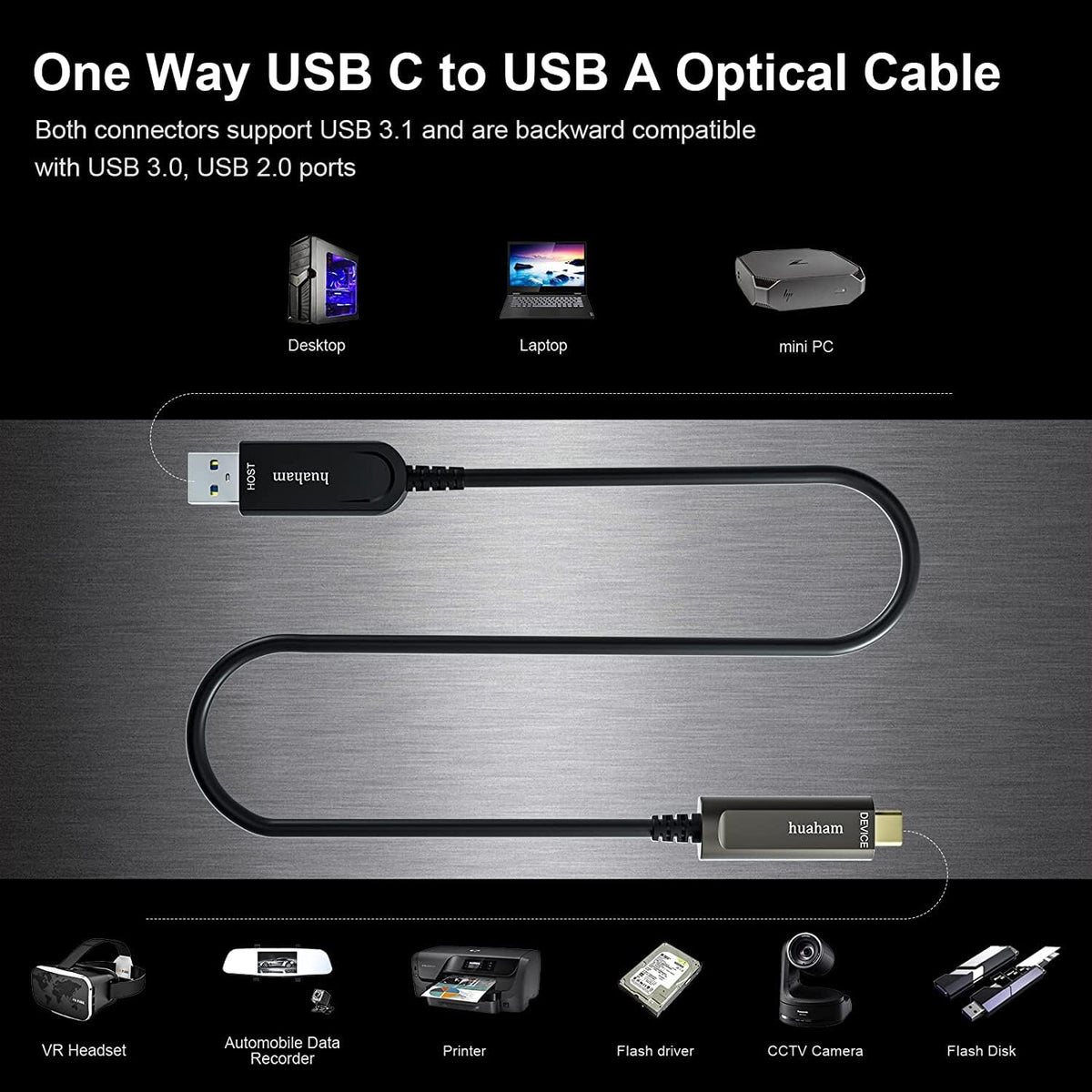 Ultra Fast Display Technology High Quality And Inexpensive. Huaham Fiber Optic Usb A To Usb C Cable Supports The Usb 3.1 Specification, Transmit Video And Audio Signals At A Distance Of Up To 166 Feet To Ensure Zero Data Loss. It Produces No Electromagnetic Energy And Is Resistant To Electromagnetic Interference, Making It Safe And Reliable For Multi-Data Transmission.