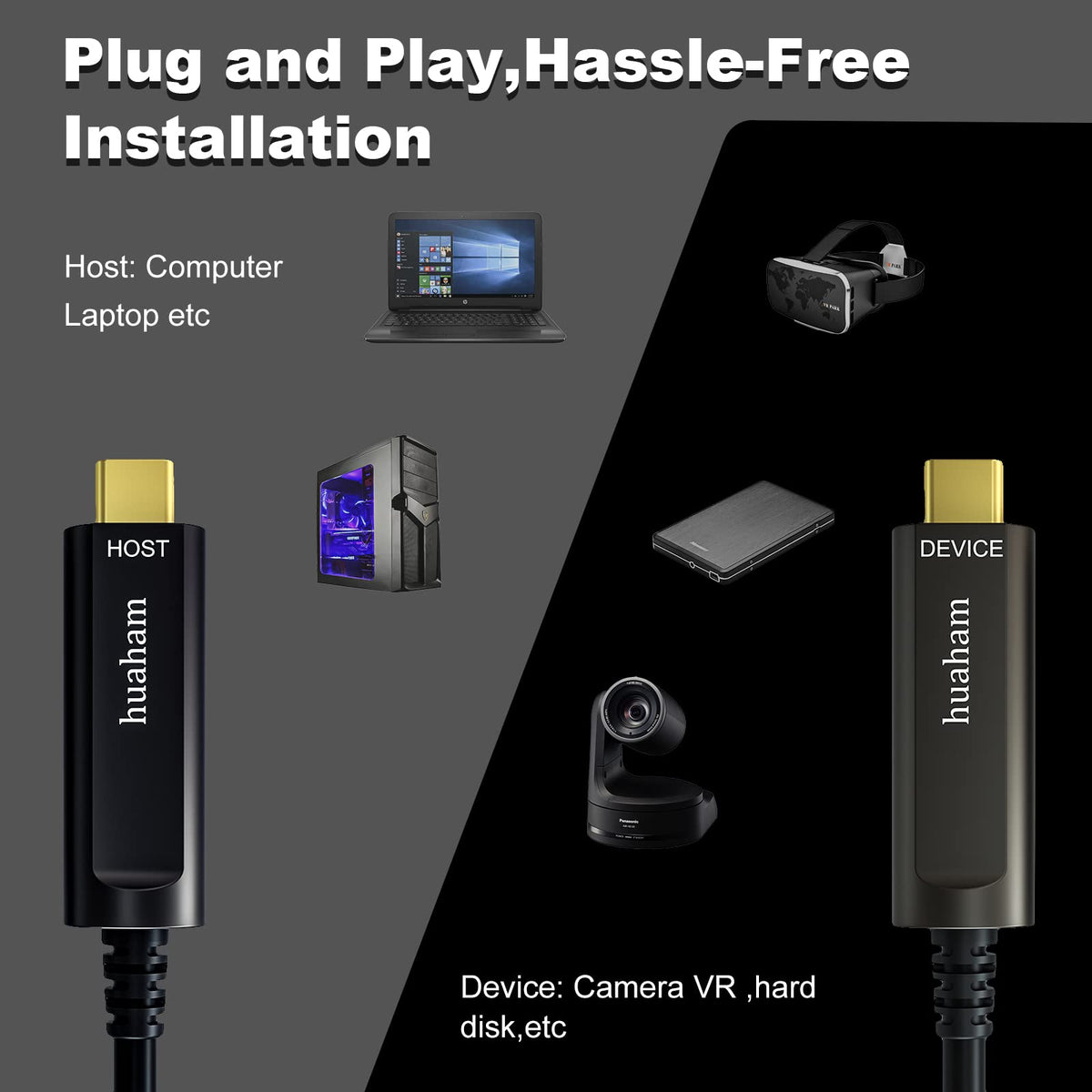 Latest Ultra High Speed Display Technology Quality And Inexpensive Huaham Fiber Optic Usb C To Usb C Cable Supports Usb 3.1 Specification, Which Allows 10Gbps Video And Audio Signals Transmission Up To 164Ft In Distance With Zero Data Loss. It Doesn'T Produce Electromagnetic Energy And Is Resistance For Electromagnetic Interference So That It'S Secure And Reliable For Transmitting Multi-Data