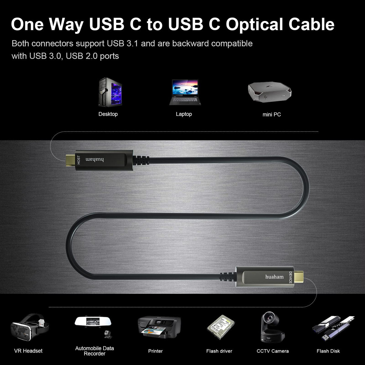Huaham Usb C To Usb C Fiber Optic Cable 33Ft, Usb 3.1 Type C Cable 10Gbps Gen2 Long Distance Transmission Usb C Cable Compatible With Logitech Camera, Microsoft Azure, Vr/Ar, Touch Screen, Laptop