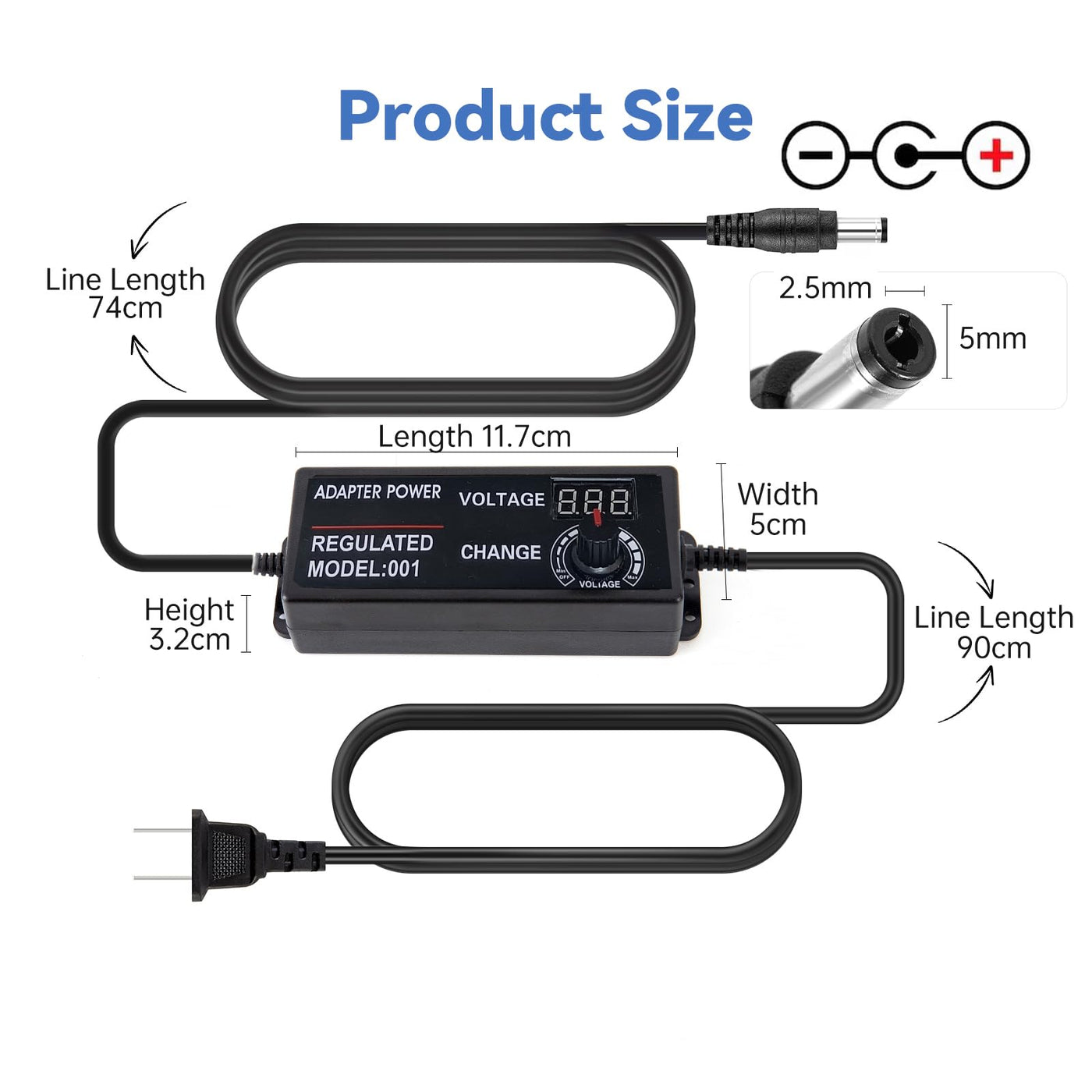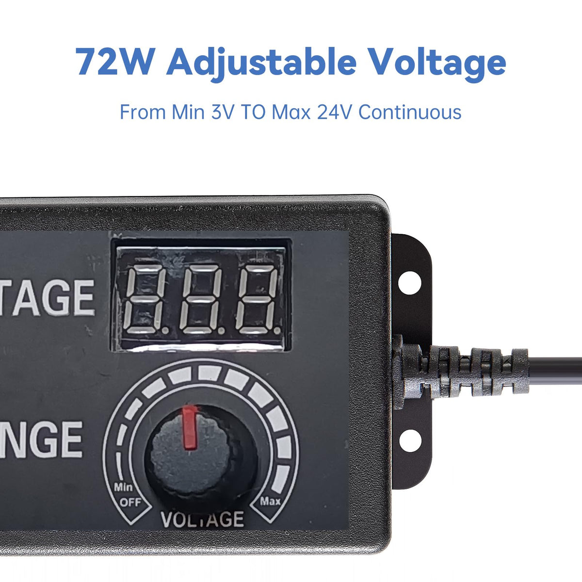 Hzhfcb 3V-24V 3A 72W Power Supply Adjustable Dc From 3V To 24V Variable Universal Continuous Ac/Dc Adapter 100V-240V Ac To Dc Converter With 8 Tips.