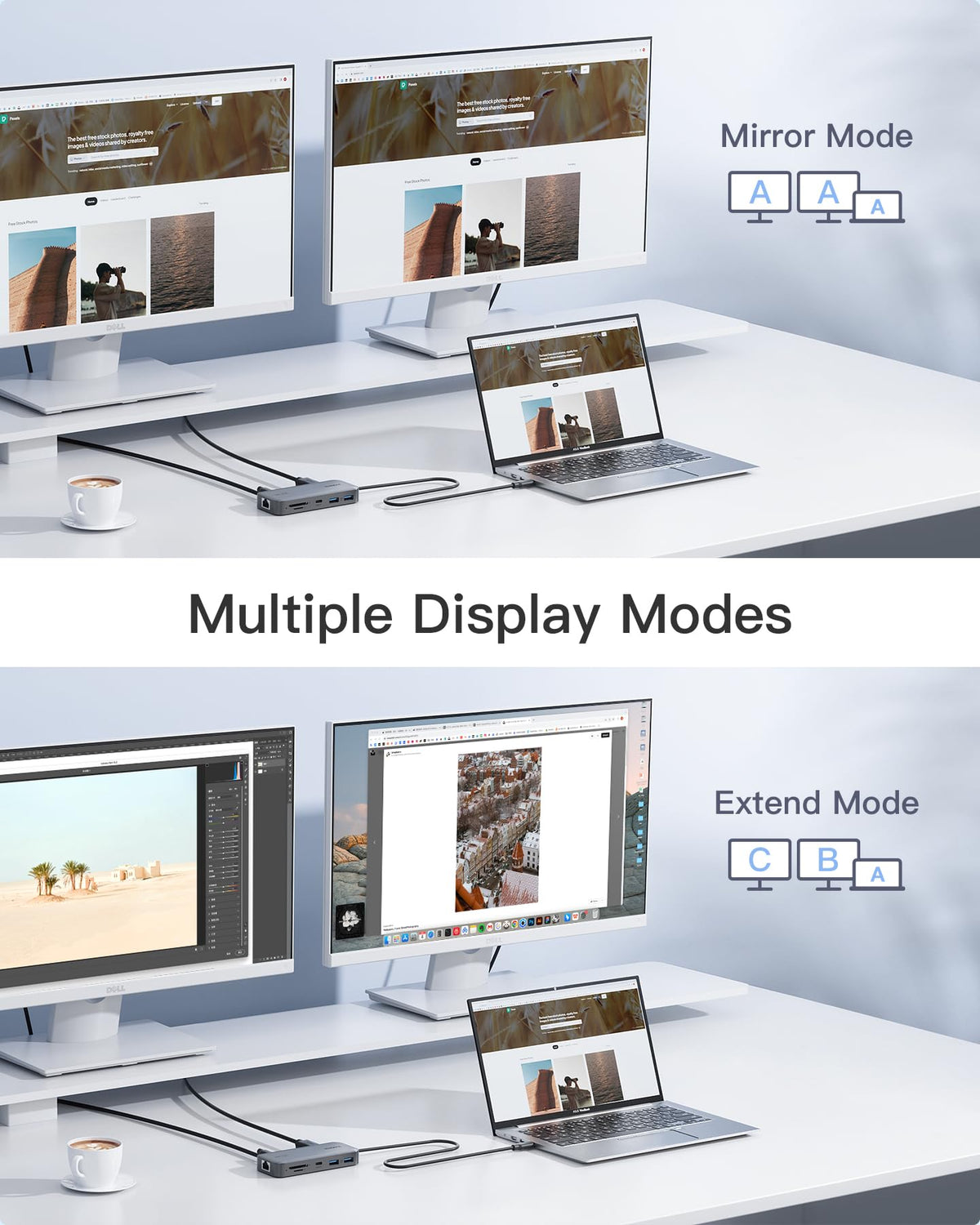 Inateck Hdmi Docking Station 4K 60Hz, Usb C Video+Data, 100W Pd,10 In 1 Usb 3.2 Type C Hub, 2 Usb 3.0 A, Rj45 Ethernet, 1.6Ft Ca