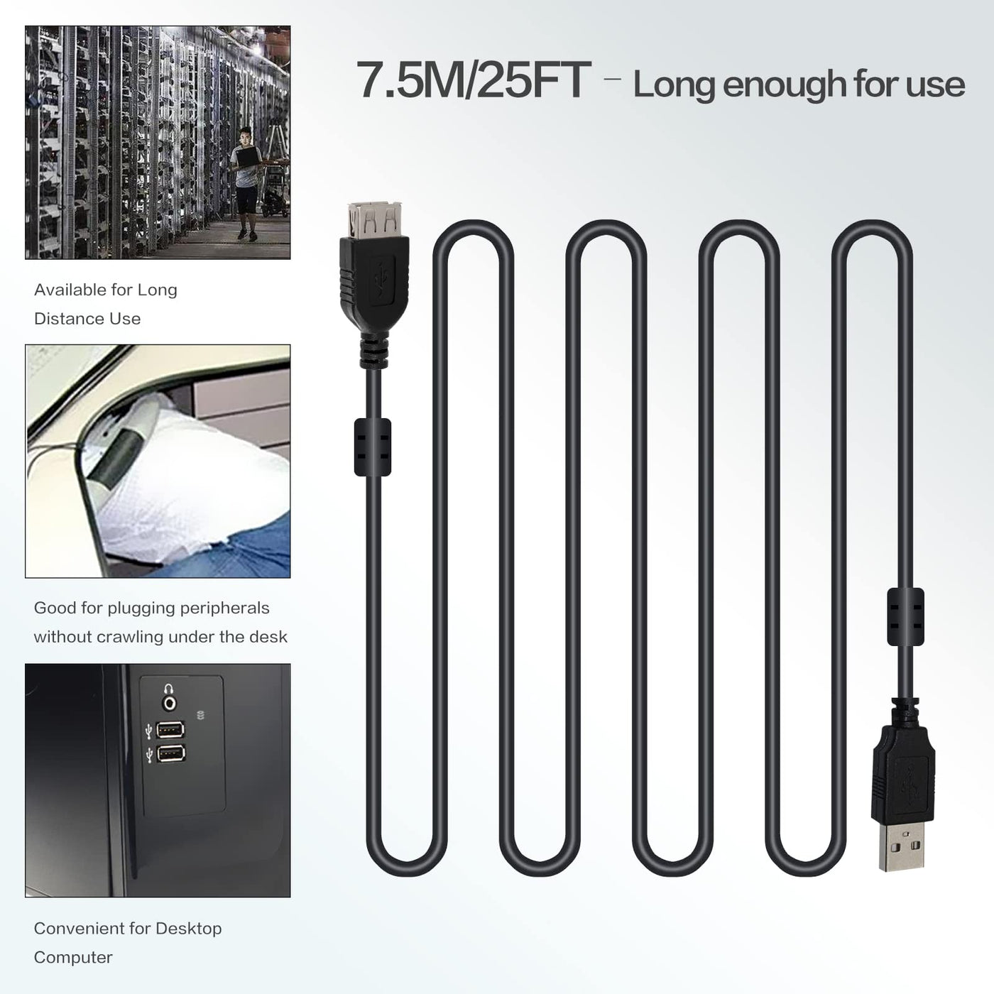 Product Detail Premium Usb 2.0 Cable, Type A Male To Type A Female, Length = 25Ft (Around 7.5M) Certified Shielded High-Speed Usb 2.0 Bulk Cable Highest Quality Material Lead-Free, Environmentally-Friendly Additional Specifications New Usb 2.0 Extenison A/M To A/F Cable, L=25Ft, Color Black 100% Compatible With All Usb Peripherals Simple Hot-Pluggable Plug And Play Connections High Data Transfer Rates Fully Molded Strain Reliefs And Connector Ends For Durability And Long Life Cycle Plated Contacts Provide Reliability Through Repeated Mating Cycles Applications: Pc, For Mac, Cameras, Scanners, Storage Devices, Printers, And Other Devices Package Include: 1 Piece X 25Ft Usb 2.0 A F/M Extension Cable
