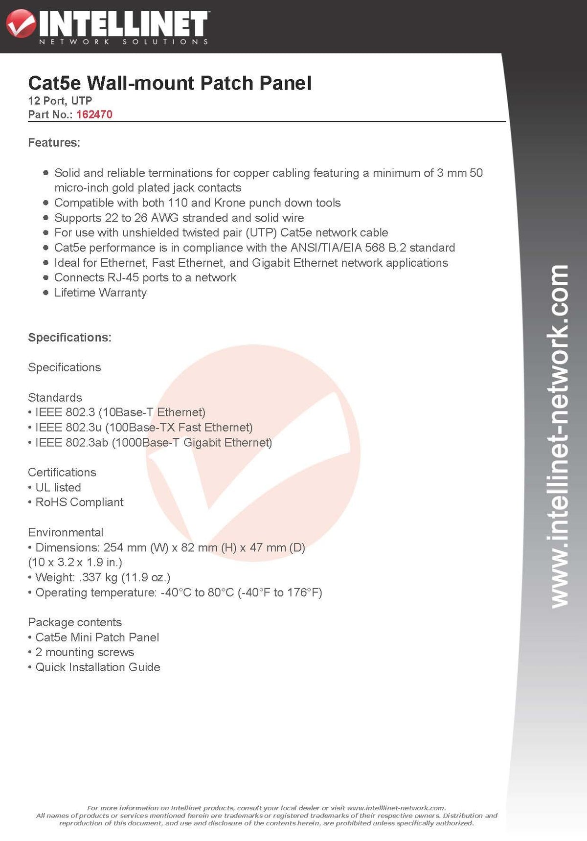 Intellinet 12 Port Cat 5E Network Patch Panel Wall Mount With 89D Bracket Installer Grade 3Mm 50 Micro Inch Gold Plated Jack C
