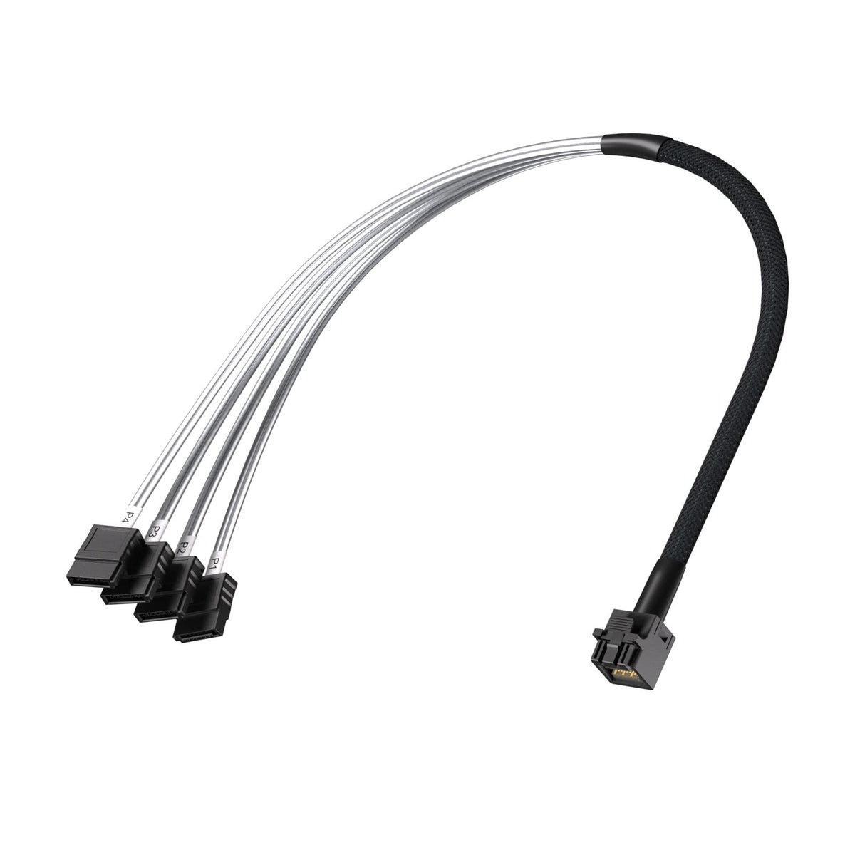 Sff-8643 To 4X Sata Cable: Internal Mini Sas (Serial Attached Scsi) To 4X 7Pin Sata Cable, 0.75-Meters (2.46 Ft) | High-Speed Transmission: Point-To-Point Scsi Data Transfer Speeds Up To 6 Gbit/S, Uses Less Pcb Real Estate And Allows Higher Port Density For Internal Hosts And Devices. | Sff-8643 Connector: Internal Hd Mini Sas Connector On The Host For Connecting Motherboard Or Raid Controller. (Note: Before You Buy This Cable , Please Make Sure The Mini Sas (Sff-8643) On Your Motherboard Or Raid Controller. If The Mini Sas (Sff-8643) On Your Backplane, This Cable Will Not Work With Them.) | Sata Connector: 4X 7Pin Sata Is The Target, Connect To The Hard Drives With Sata Ports | Widely Applicable For Enterprise Storage, High-Performance Computing, Networking, Data Centers, Workstations, Etc.