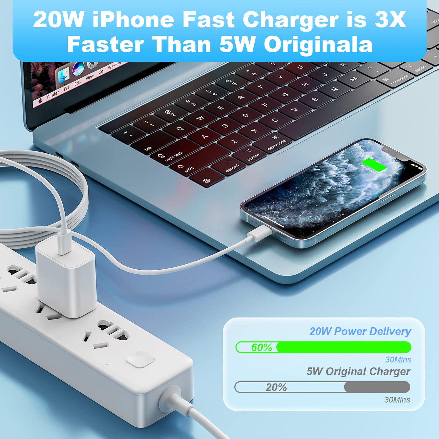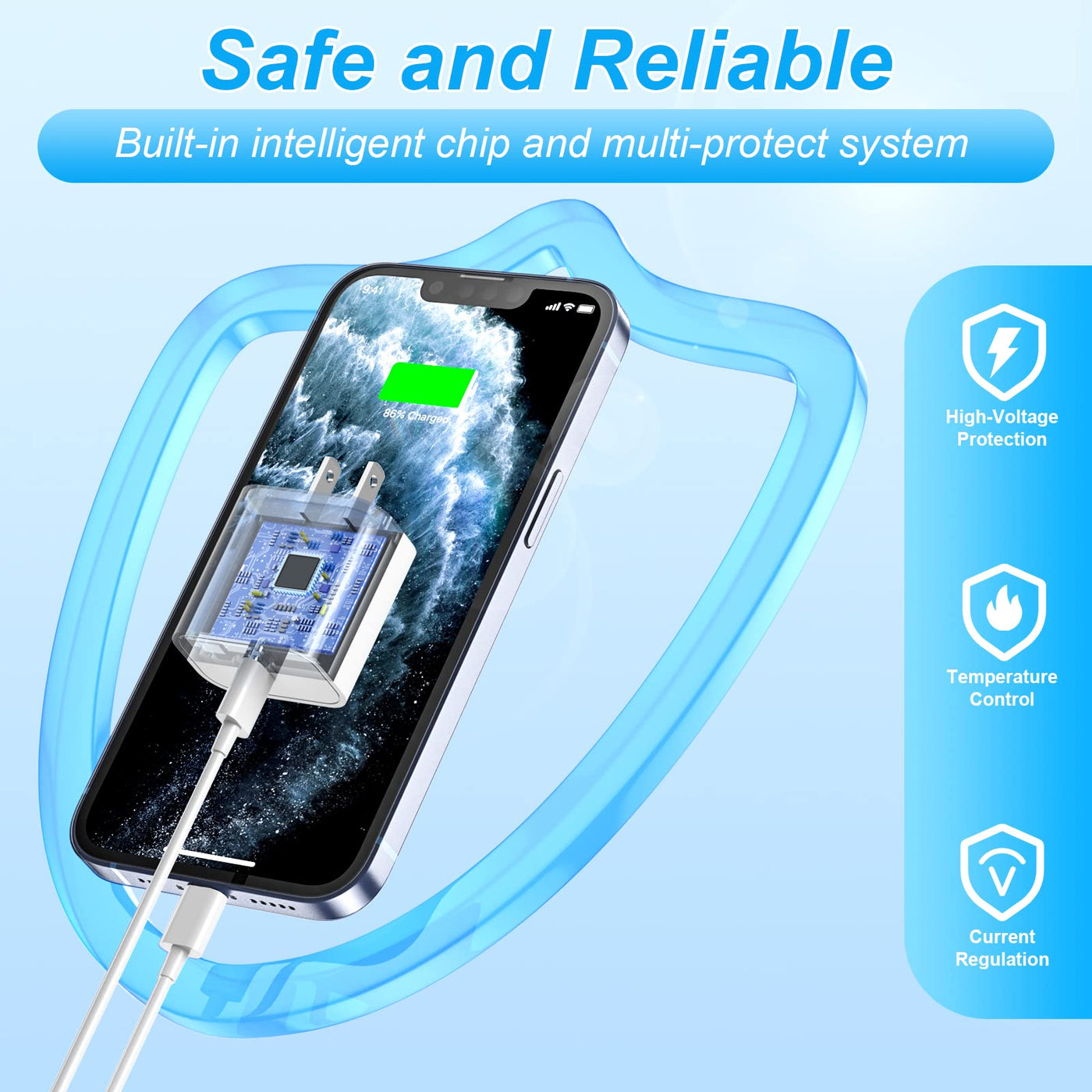 2Pack Pd 20W Iphone Charger Travel Plug & 6Ft Long Usb-C To Lightning Fast Charging Cable Product Specifications 20W Usb C Power Delivery Fast Charger Mfi Certified Chip Cable Length: 6Ft Input Voltage: 100-240V ~ 50-60Hz, 0.6A Output Power: 5V/3A, 9V/2A, 9V/2.22A, 12V/1.66A 20W Power Delivery Fast Charger Universal Compatibility: Iphone 14/14 Plus/14 Pro/14 Pro Max Iphone 13/13 Mini/13 Pro/13 Pro Max Iphone 12/12 Mini/12 Pro/12 Pro Max Iphone 11/11 Pro/11 Pro Max Iphone Se 2020/Xs/Xs Max/Xr/X/8/8 Plus Ipad Pro/Mini/Airpods Pro And More Standard Charge Speed: Iphone 7/7 Plus/6/6 Plus/6S/6S Plus/5/5C/5S/Se/Ipad Air/Mini And More. 3.0X Faster Charging: Iphone Fast Charger With Original Usb C To Lightning Cord, Charges Iphone 14 13 Pro Max Up To 50% In Just 30 Minutes, Which Saves More Than 1.5 Hours When Compared To The 5W Original Charger. Built In High-Tech Chip: The Smart Chip In The Usb-C Power Adapter Built-In Multi-Protection System, Match The Current Required By The Lightning Device Automatically, Avoiding Over-Voltage/Over-Charge/Over-Heat, Etc, Charges Your Iphone/Ipad Device Fast, Safely And Steadily And Security While Also Protecting Battery Life. Mfi Certified C To Lightning Cable: 1.Built-In Overvoltage Protection, Battery Protector, And Automatic Chip Recognition Functions Protect Your Iphone Well From Damages. 2.Connect Your Macbook/Pro With Iphone/Ipad Directly And Enjoy The 480 Mbps Data Transfer Speed. 3.6Ft Perfect Length, You Can Charge Your Device In A Comfortable Position. What You Get 2 * 20W Pd 3.0 Usb C Wall Charger 2 * 6Ft Mfi Certified Usb C To Lightning Cable