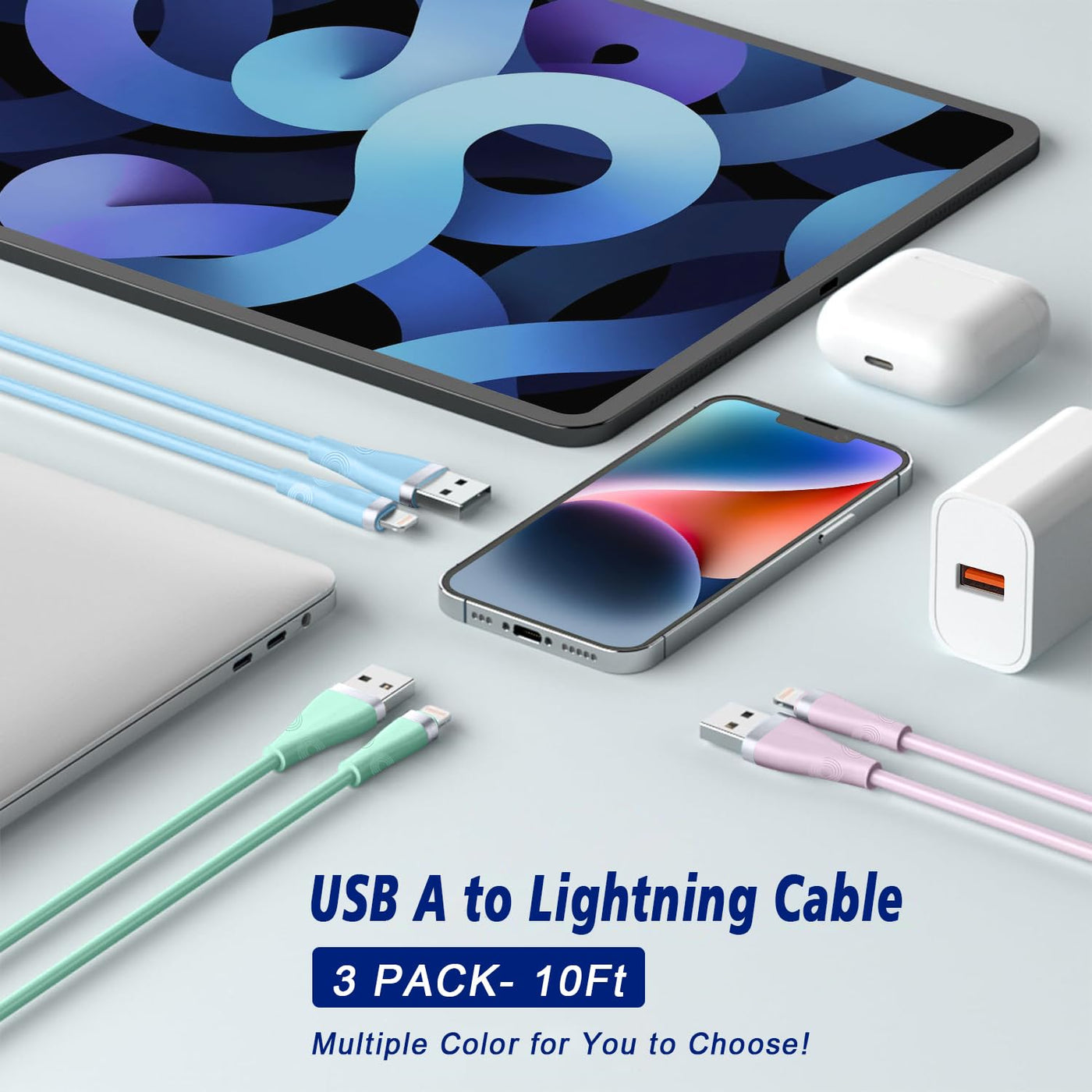 Iphone Charger 3Pack 10Ft [Apple Mfi Certified] Iphone Charger Cord Usb To Lightning Cable 10Ft Fast Charging Cord Compatible Wi