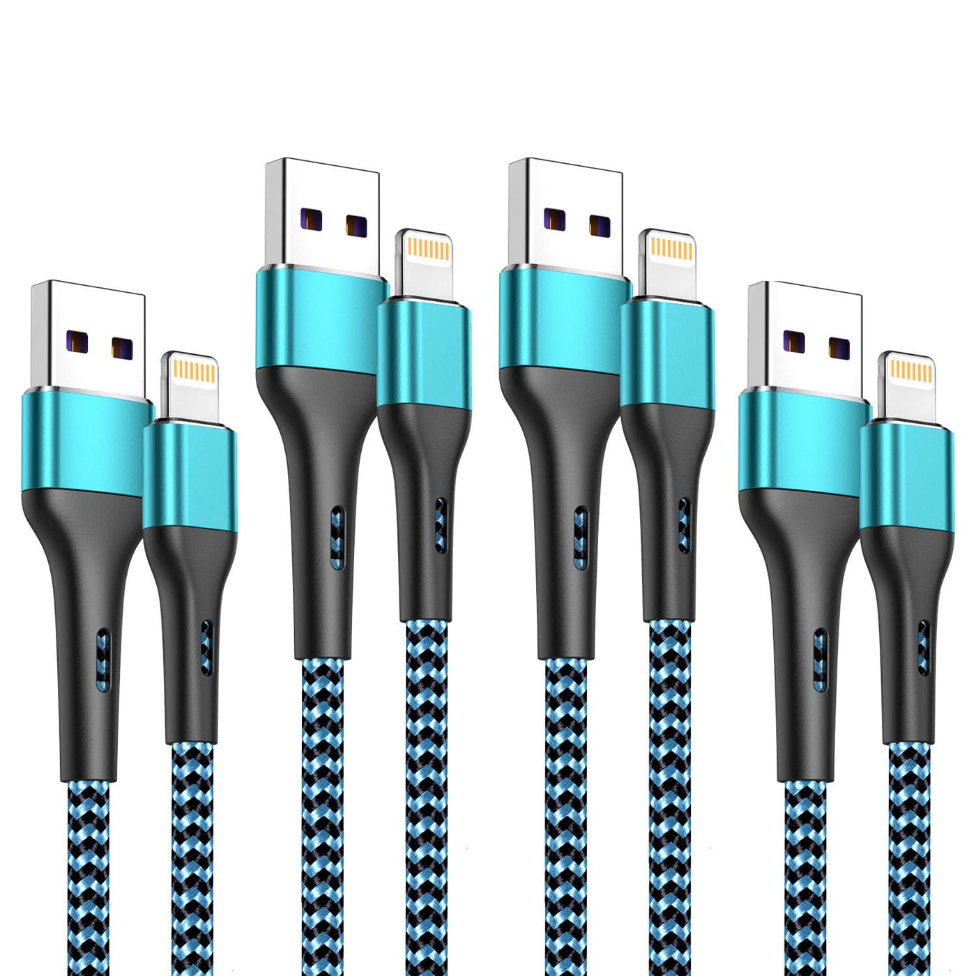 Iphone Charger 4Pack 10Ft, [Apple Mfi Certified] Lightning Cable 10 Foot Long Iphone Charger Cord Fast Charging Cable For Iphone 13 12 Pro Max Mini 11 Pro Xs Xr X 10 8 7 Plus 6S 6 Se 2020 Ipad Blue