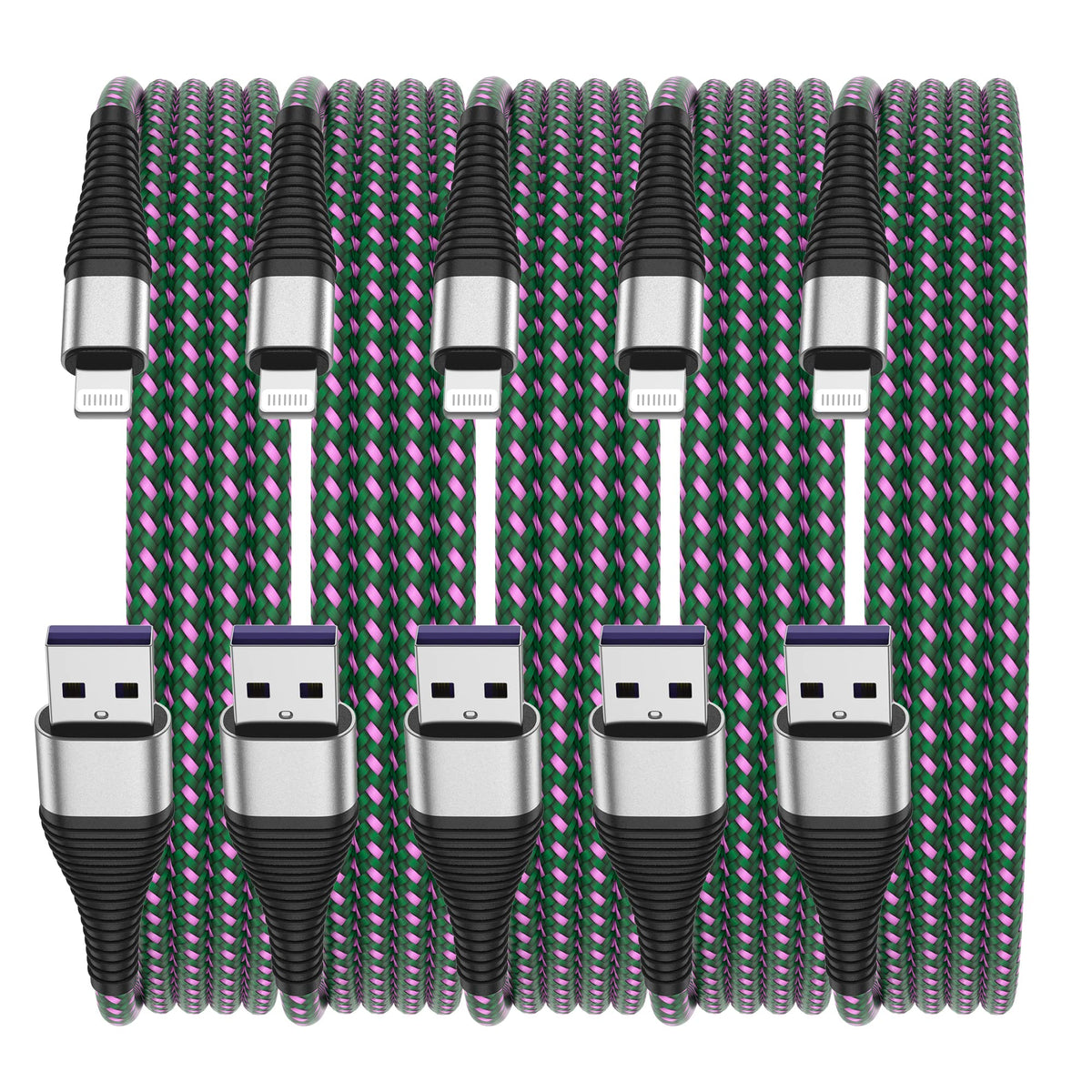 Iphone Charger 6Ft,[Apple Mfi Certified] Lightning Cable 5 Pack 6 Foot, Long Iphone Charging Cord 6 Feet Usb Cables Compatible With Iphone 13/12/11/Xs/Xs Max/Xr/X / 8/8 Plus / 7/7 Plus/ 6 (Green)