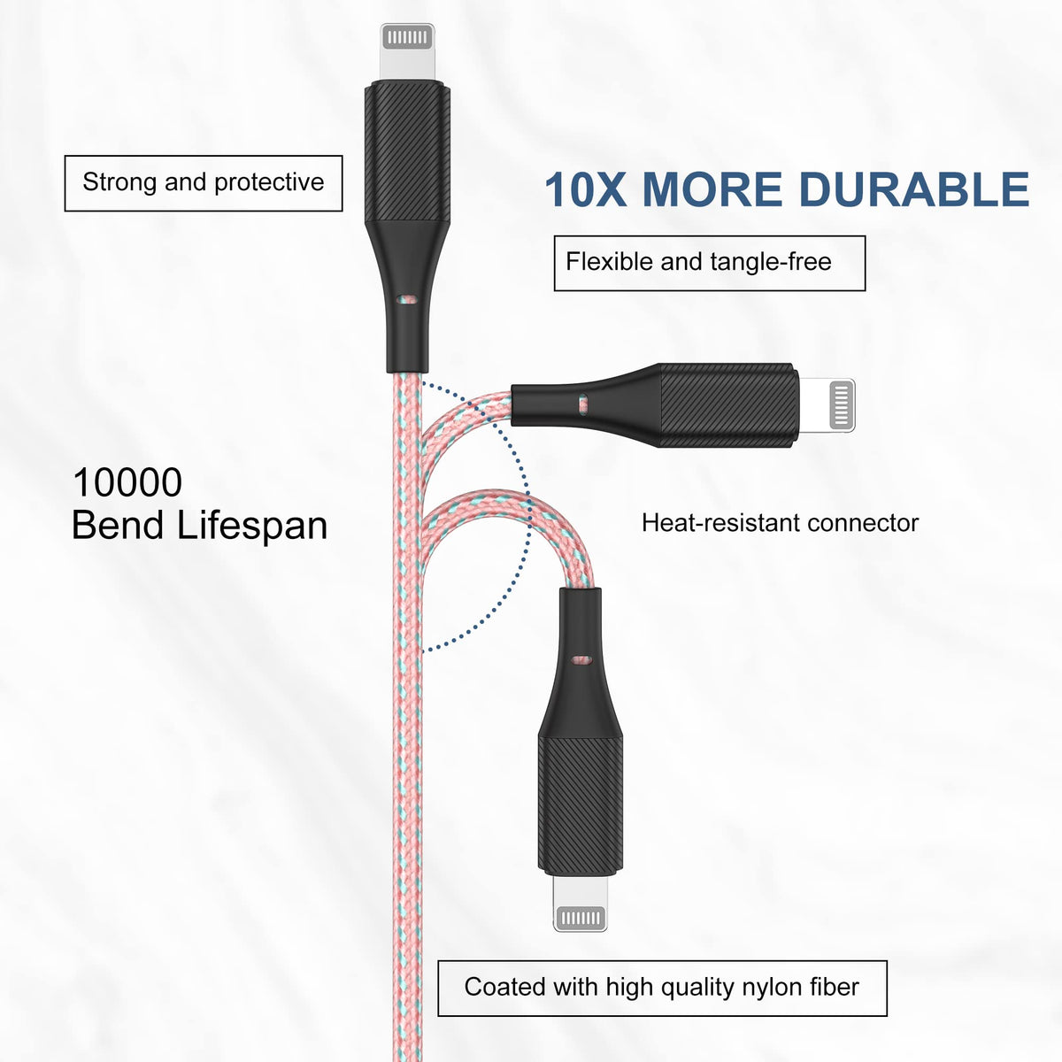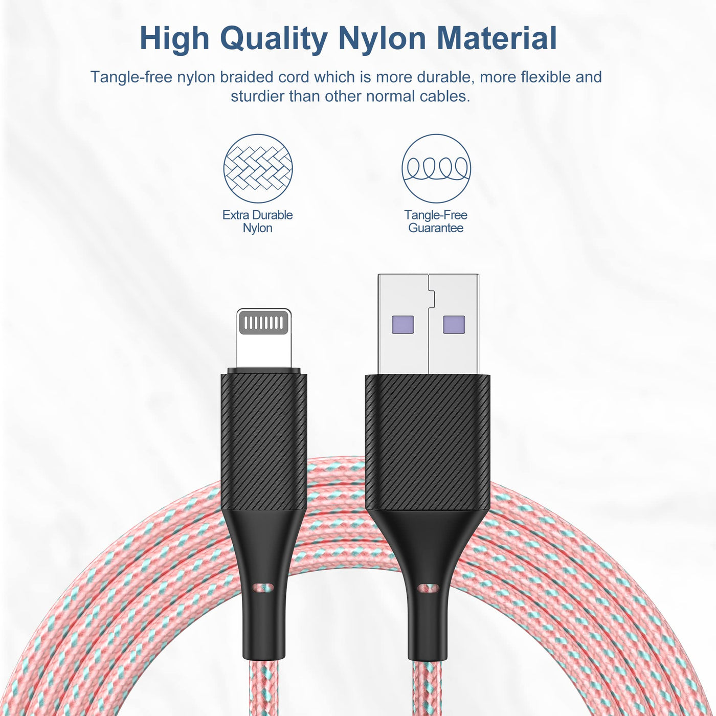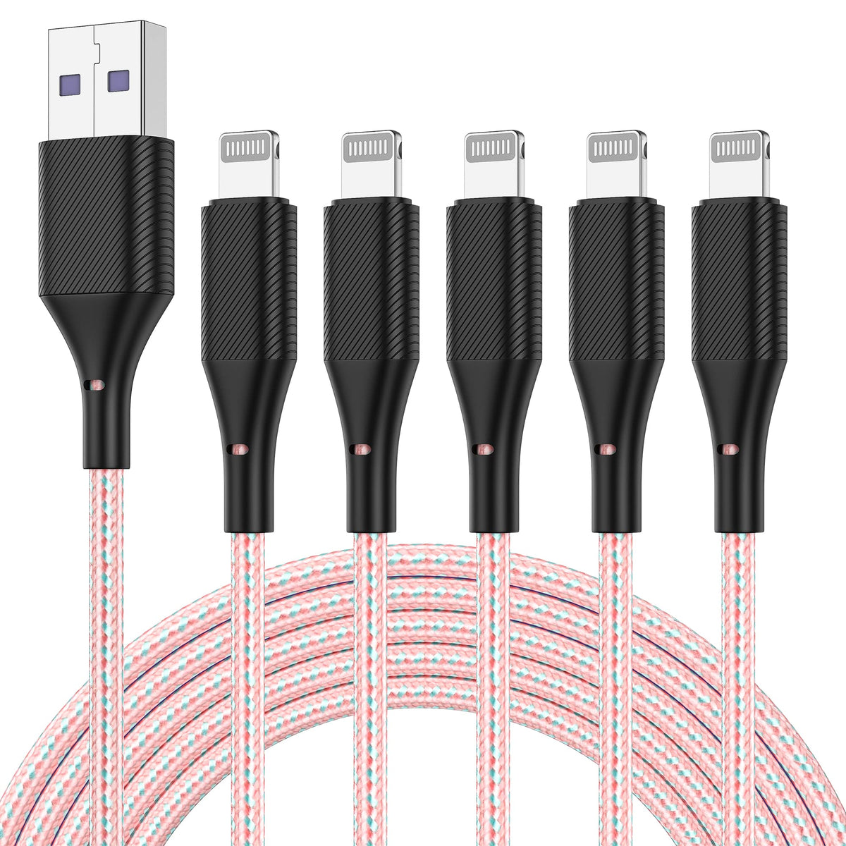 Iphone Charger Cable 10Ft 5Pack,[Apple Mfi Certified] Long Lightning Cable 10 Foot Iphone Charging Cord For Iphone 12/11/11 Pro/X/Xs Max/Xr/8/8 Plus/7/6/6S/Se/5C/5S/5 Ipad Air 2/Mini Airpods(Pink)