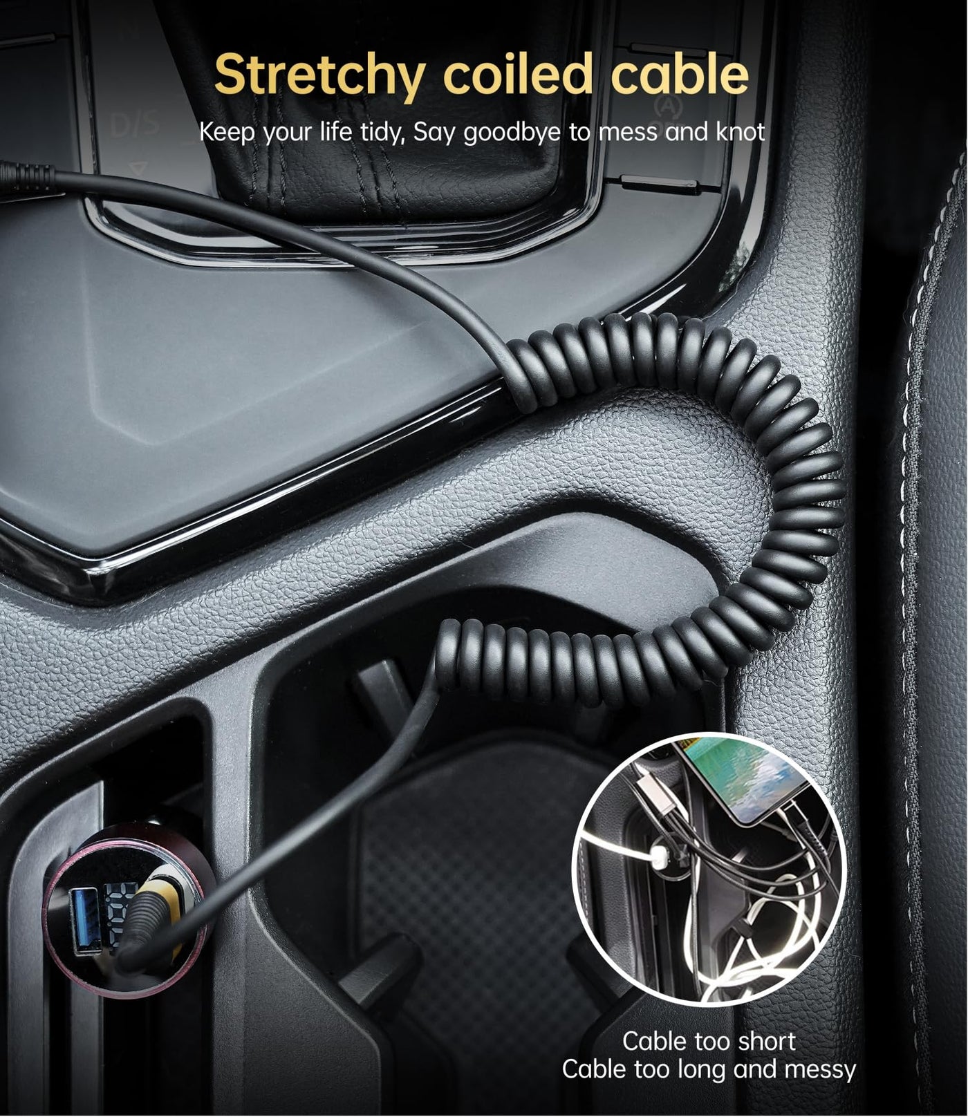 ?Coiled Lightning Cable Made For Car? The Iphone Charger Cord Stretchable Design, No Tangle, No Knot, Stretch Freely, Does Not Take Up Space. The Iphone Charging Cable Is Made Of Upgraded High Quality Pu Material, Which Is Flexible, Easy To Stretch, Effortless, Quick To Rebound And Not Easily Deformed. | ?Mfi Certified Iphone Cable? This Iphone Charger Cable Has A Built-In Mfi Certified Chip.Apple Mfi Certified Coiled Lightning Cable, 100% Compatible With Iphone. Support All Ios Versions, No Warning Message Pops Up. Ensures Your Lightning Device Can Transfer And Charge Data Safely And Quickly.Provides Security For Your Device. | ?Safe Iphone Charger Fast Charging And Data Sync? The High Purity And Thicker Copper Cable Ensures Faster And More Stable Charging, Which Has A Positive Effect On The Battery Life Of Your Mobile Iphone. The Retractable Iphone Charger Can Support Fast Charging Up To 2.4A. It Also Supports Data Transfer Speeds Of Up To 480Mbps, Making It Easy To Transfer Music, Photos, Videos And Files In Seconds. | ?Perfectly Compatible With Apple Devices? Compatible With Iphone 14/ 14 Pro Max /14 Pro/14 Plus, Iphone 13 Pro Max/13 Pro/13 Mini, Iphone 12 Pro Max/12 Pro/12 / 12 Mini, Iphone 11 Pro Max/11 Pro/11, Iphone Xs Max/Xs/ Xr / X, Iphone 8 / 8 Plus, Iphone 7/7 Plus, Iphone 6S Plus/6S/6 Plus/ 6, Iphone 5S/5C/5/Se, Ipad/Airpods And More.Also Compatible With Carplay.The Apple Carplay Cable Connection Is Stable, So Please Feel Free To Use It. | ?Multi-Application Iphone Cord? The 3Ft Elastic Coiled Lightning Cable Is Designed To Stretch From 1 Foot To 3 Feet And Up To 4 Feet. The 5Ft Elastic Coiled Lightning Cable Is Designed To Stretch From 2 Foot To 5 Feet And Up To 6 Feet. Stretches Easily And Effortlessly. Convenient For Charging Your Devices In The Bedroom, On The Sofa, In The Office, While Travelling, Even If You'Re Sitting In The Back Seat Of The Car. Easy To Use For Different Occasions, Perfect For Your Different Needs. | ?What You Get? 2 Pack 5Ft Short Iphone Charging Cable (Coiled Lightning Charger Cable). | ?Quality Service? High Quality Product Quality Assurance, Please Use With Confidence. Note: If You Are Experience Problems With The Carplay Function, Please Try To Re-Plug The Coiled Iphone Charger Cable For Car, Revere We The Lightning Plug Before Connecting To Carplay.If You Have Any Further Questions, Please Feel Free To Contact Us. We'Ll Be Happy To Help You.