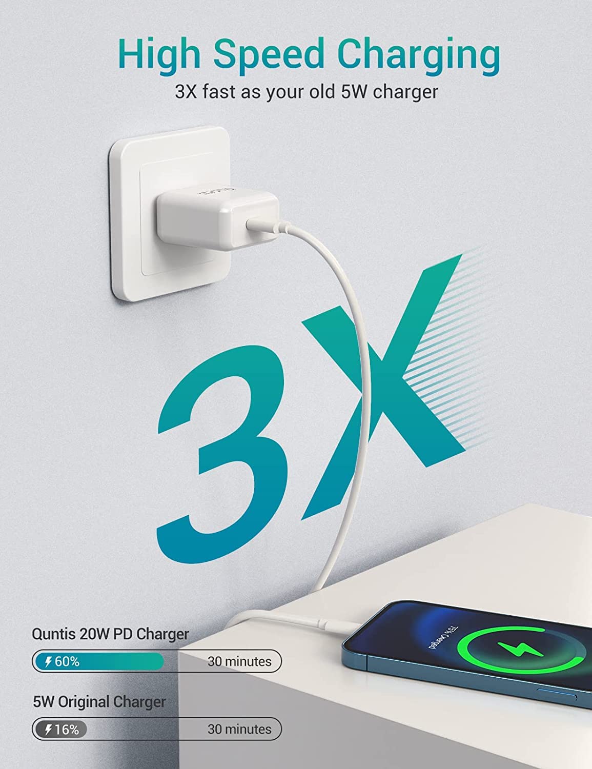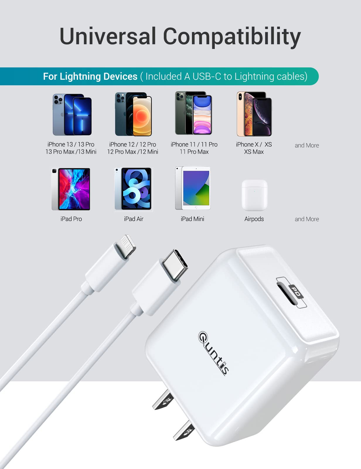 Iphone Super Fast Charger [Apple Mfi Certified], Quntis 2Pack 20W Iphone High Speed Type C Rapid Charger Plug With 6Ft C To Ligh
